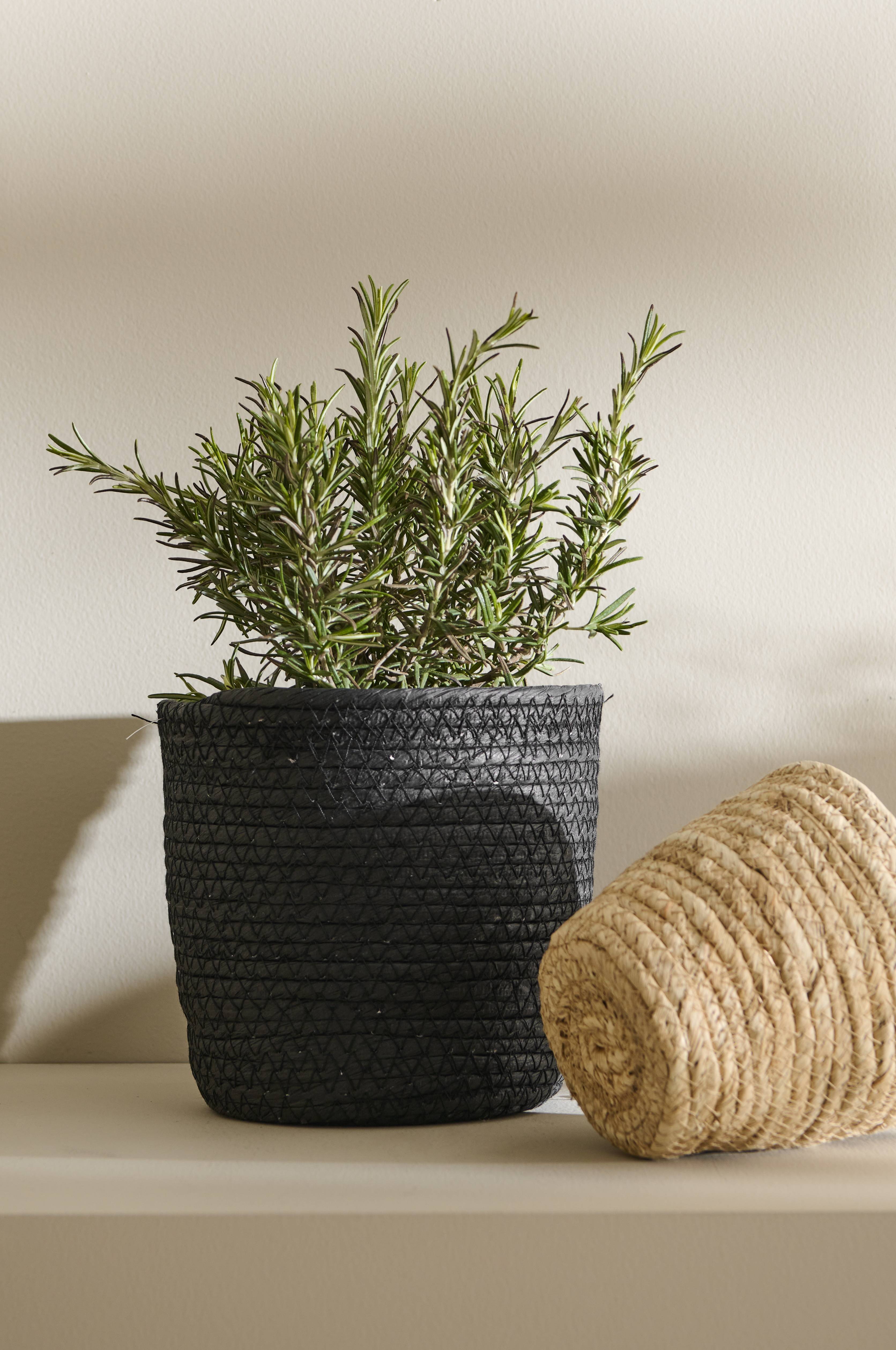 Fin kurvpotte av bambus i svart med fuktforsegling. Høyde 17 cm, diameter 18 cm
