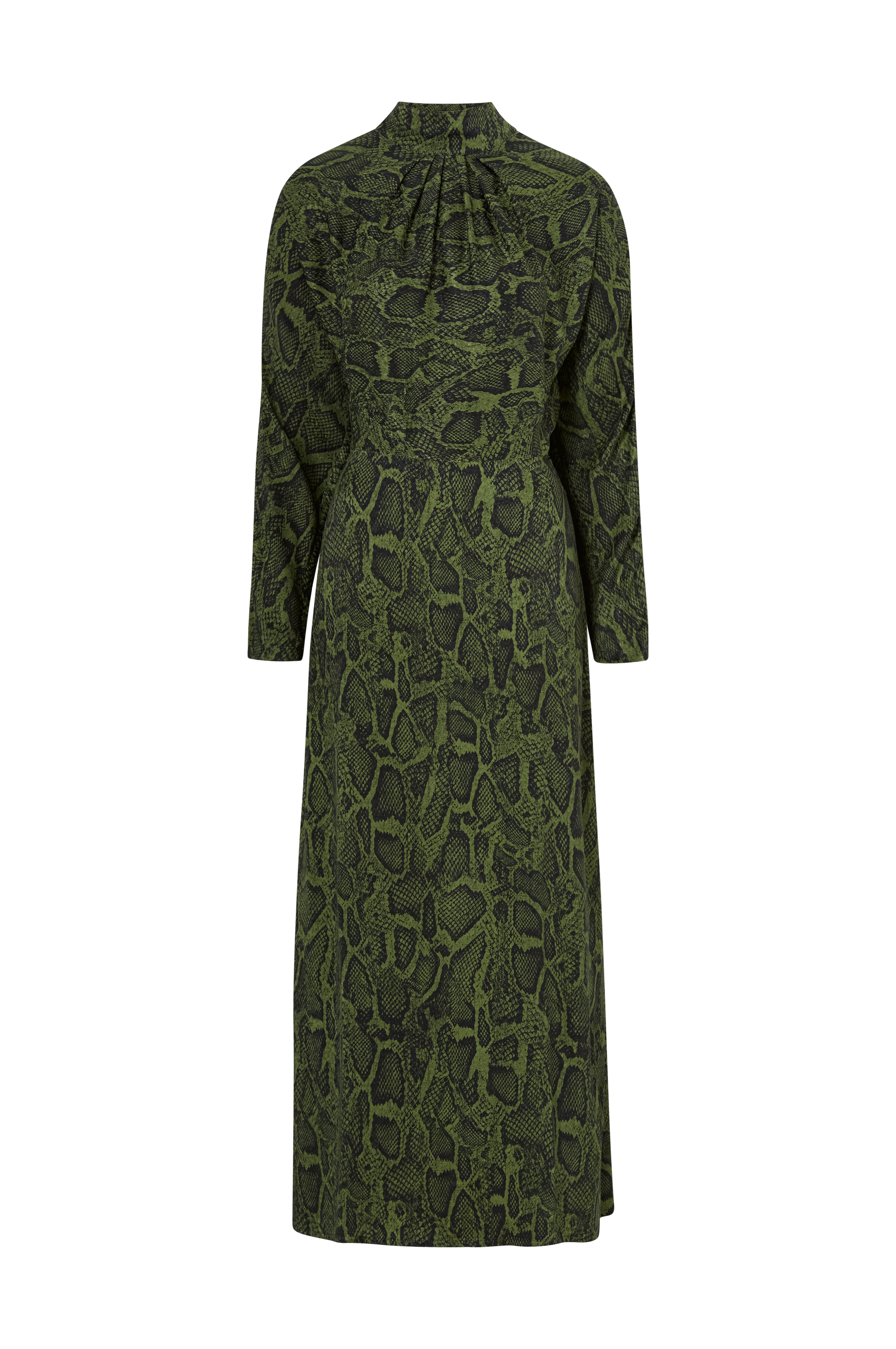 • Lang, ettersittende modell• Halvhøy krage med ventilasjon og lange knytbare tråder i nakken• Langt erme i kimonostil• Markert midje med fastsydde knytbare tråder i sidene• Lengde: 140 cm i størrelse 36