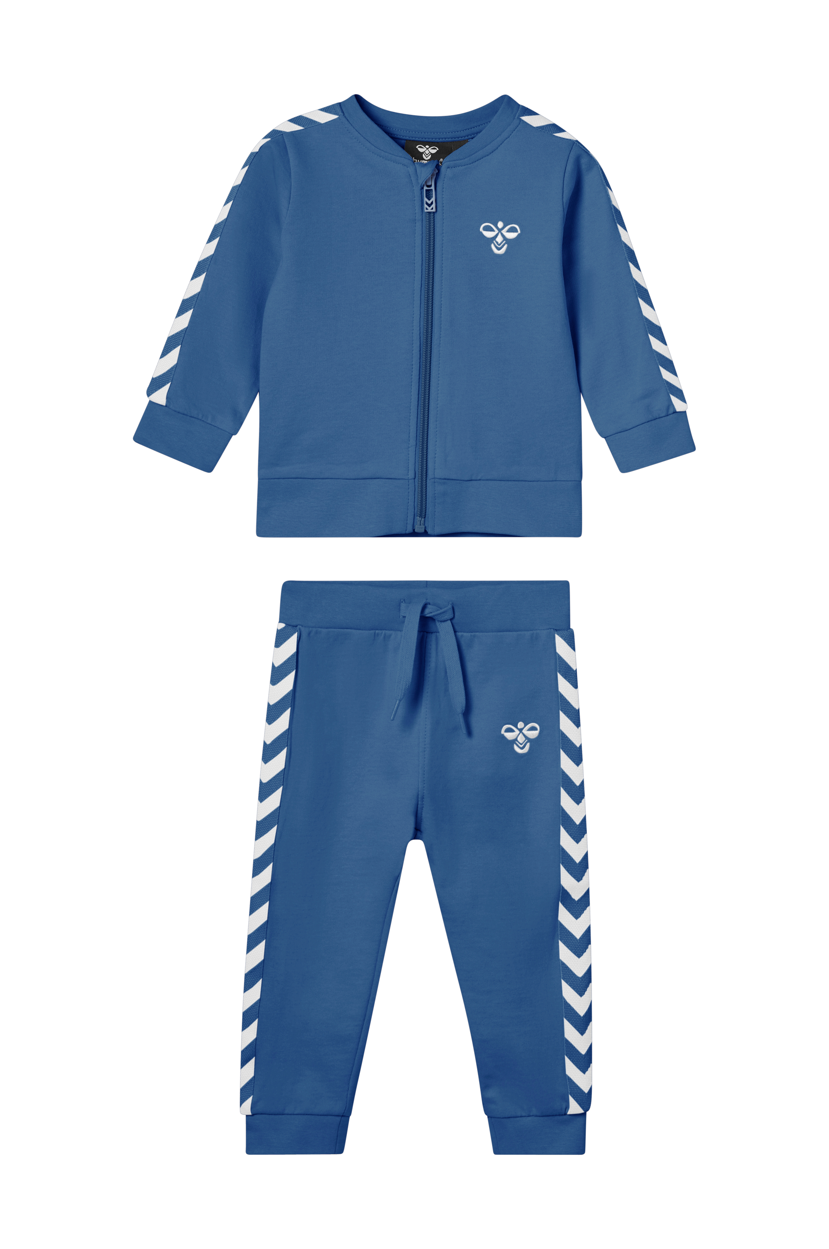 Sett med sweatshirt og sweatpants. Vevde, dekorative bånd langs ermer og ben.