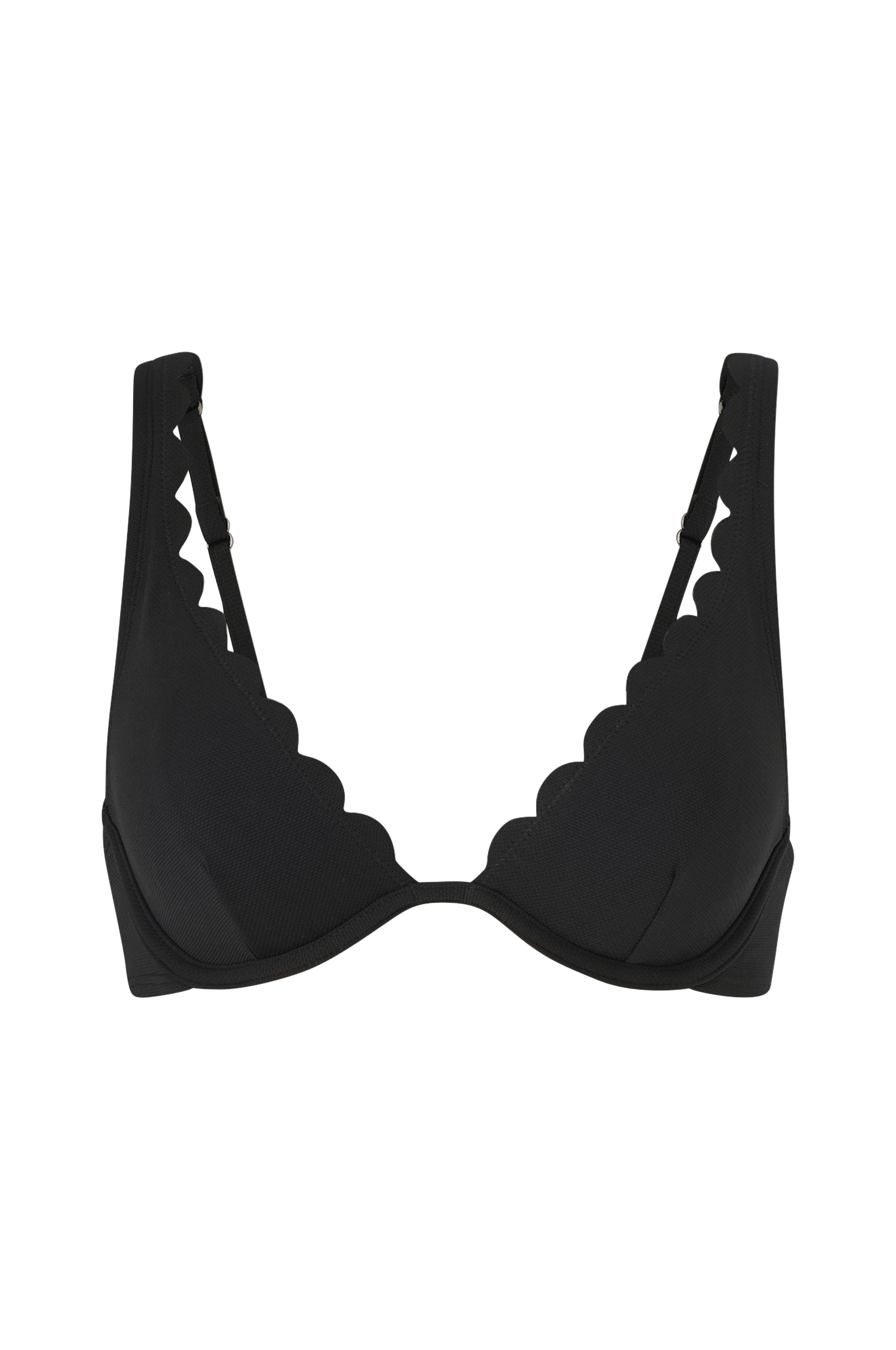 • Ikke polstret bikini BH med bølgede kanter• Metallspenne bakpå