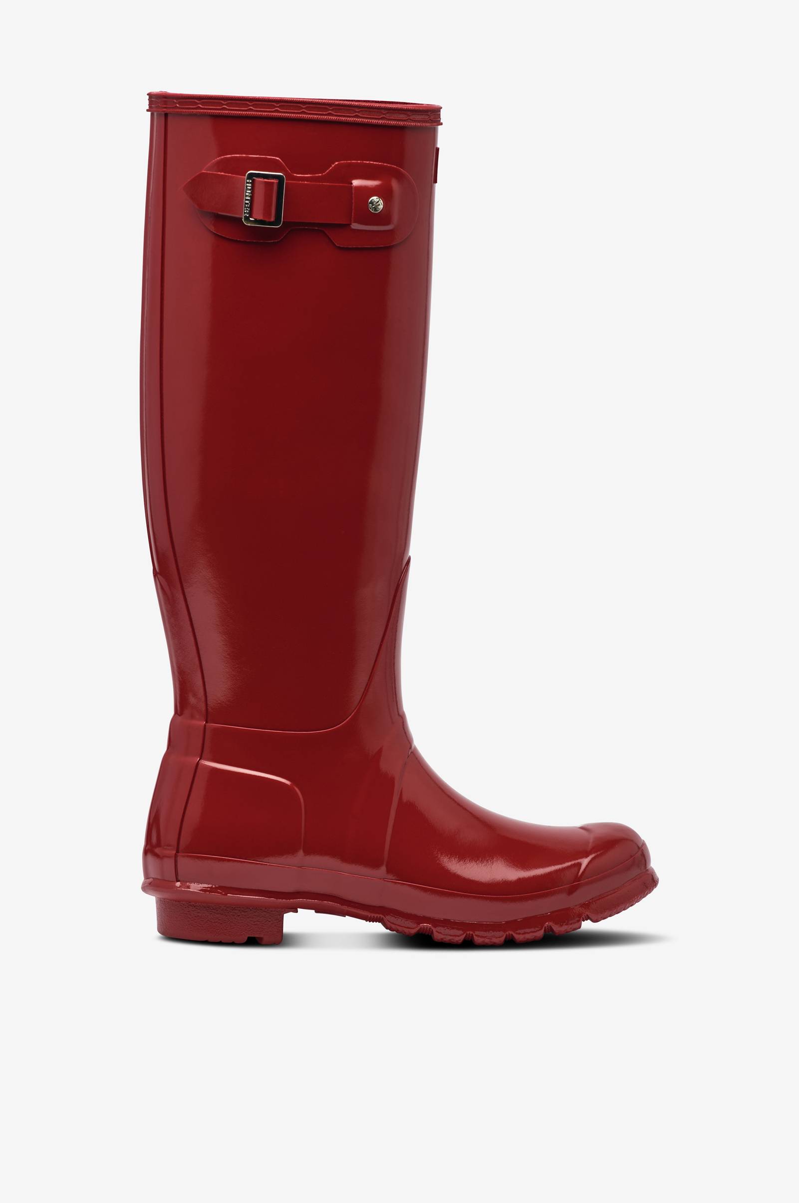 • Original Tall Gloss Boots er ikoniske gummistøvler fra Hunter • Håndlaget av naturgummi og helt vanntette • Glanset finish med høyt skaft og tekstilfôr • Justerbar stropp på skaftet • Klassisk logo foran • Mønstret yttersåle i gummi med en liten hæl for et elegant utseende