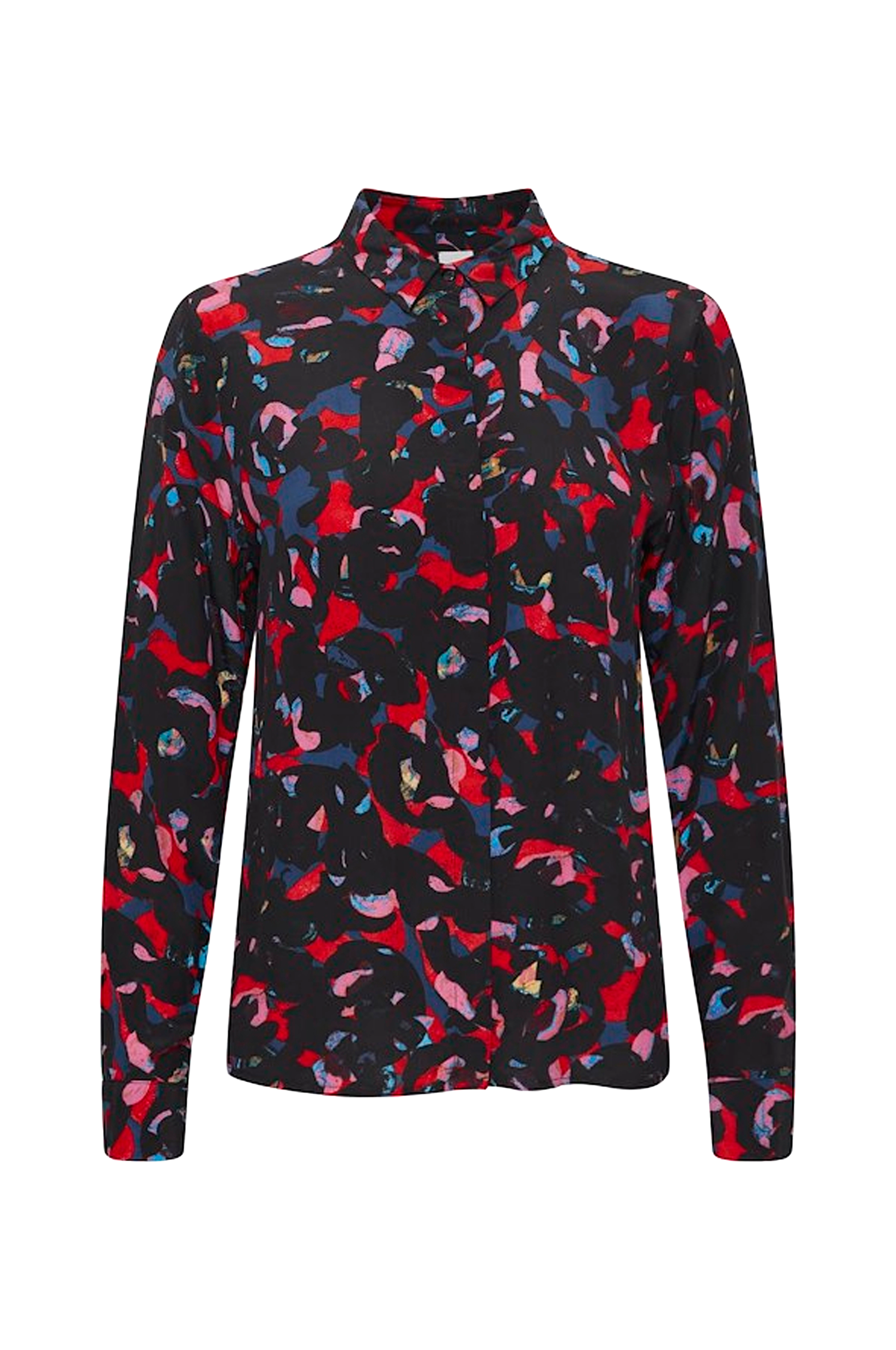 Bluse i viskose med klassisk krage og skjulte knapper. Mansjetter med to knapper.