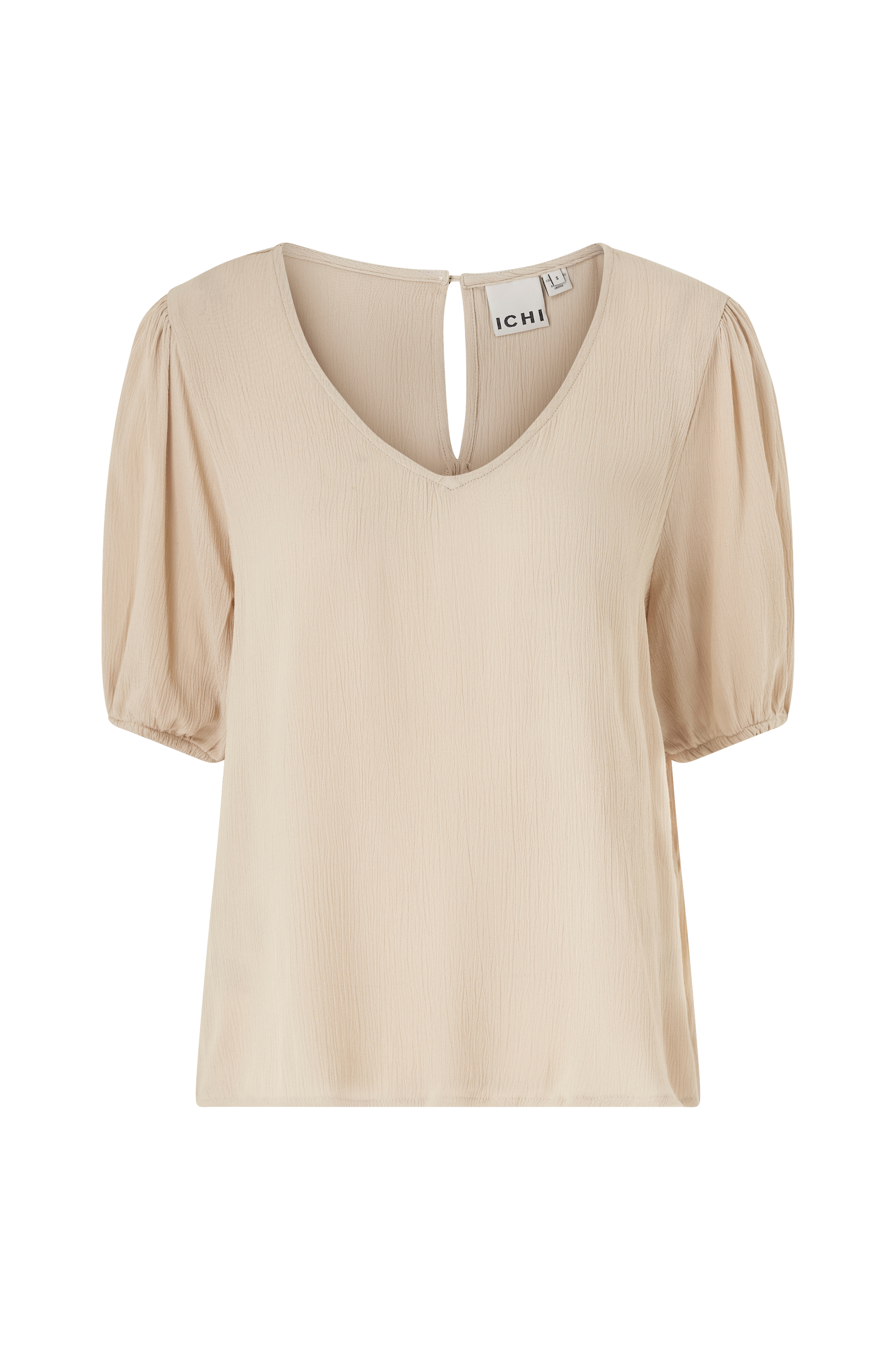• Bred, rett modell i krepp• V-formet hals med knapp i nakken• Halvlangt erme med gummistrikk i ermeslutten