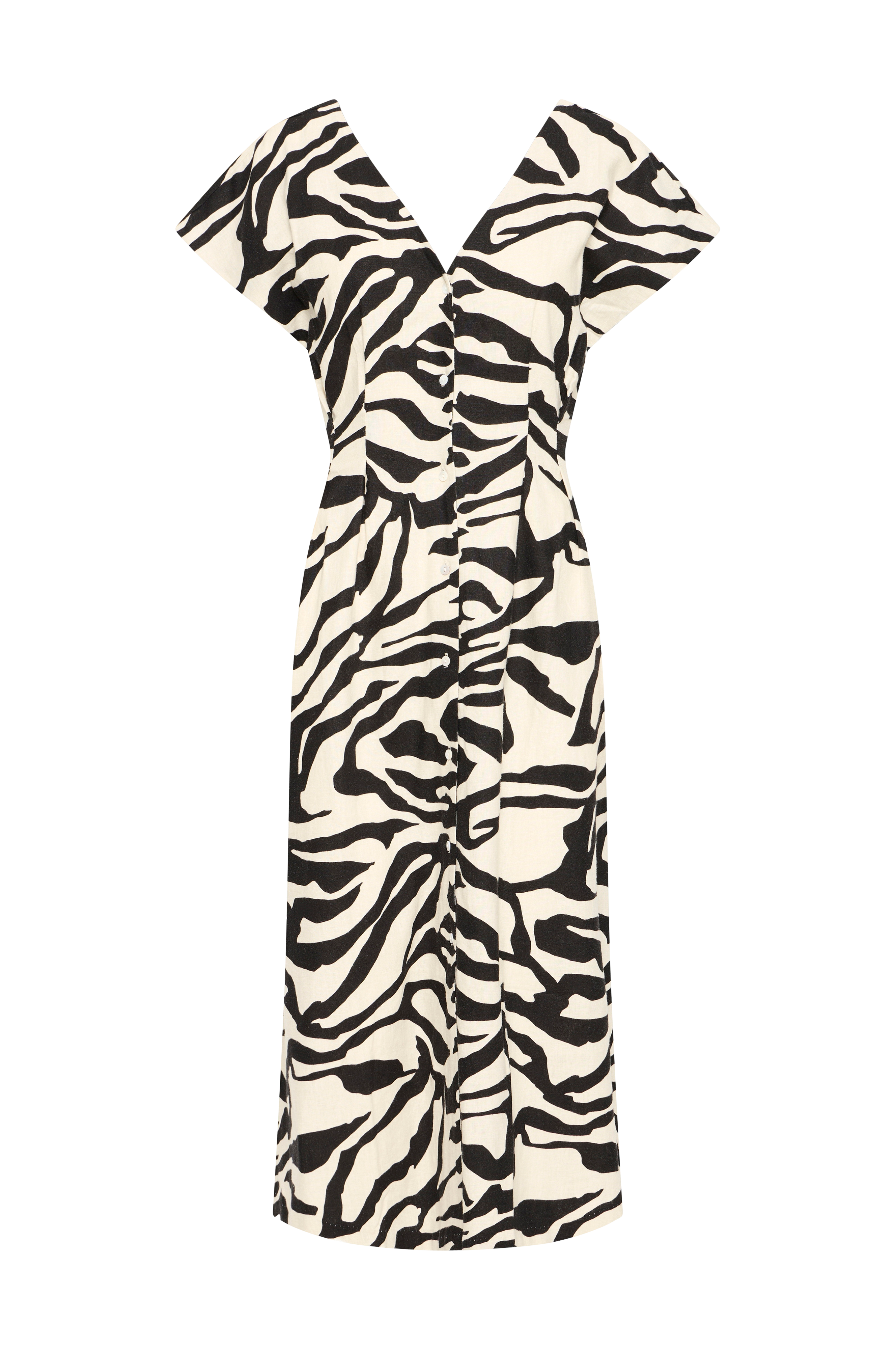 • Ermløs kjole i linmiks• V-hals snitt foran og bakpå• Knapper foran• Lengde: 123 cm i størrelse 36