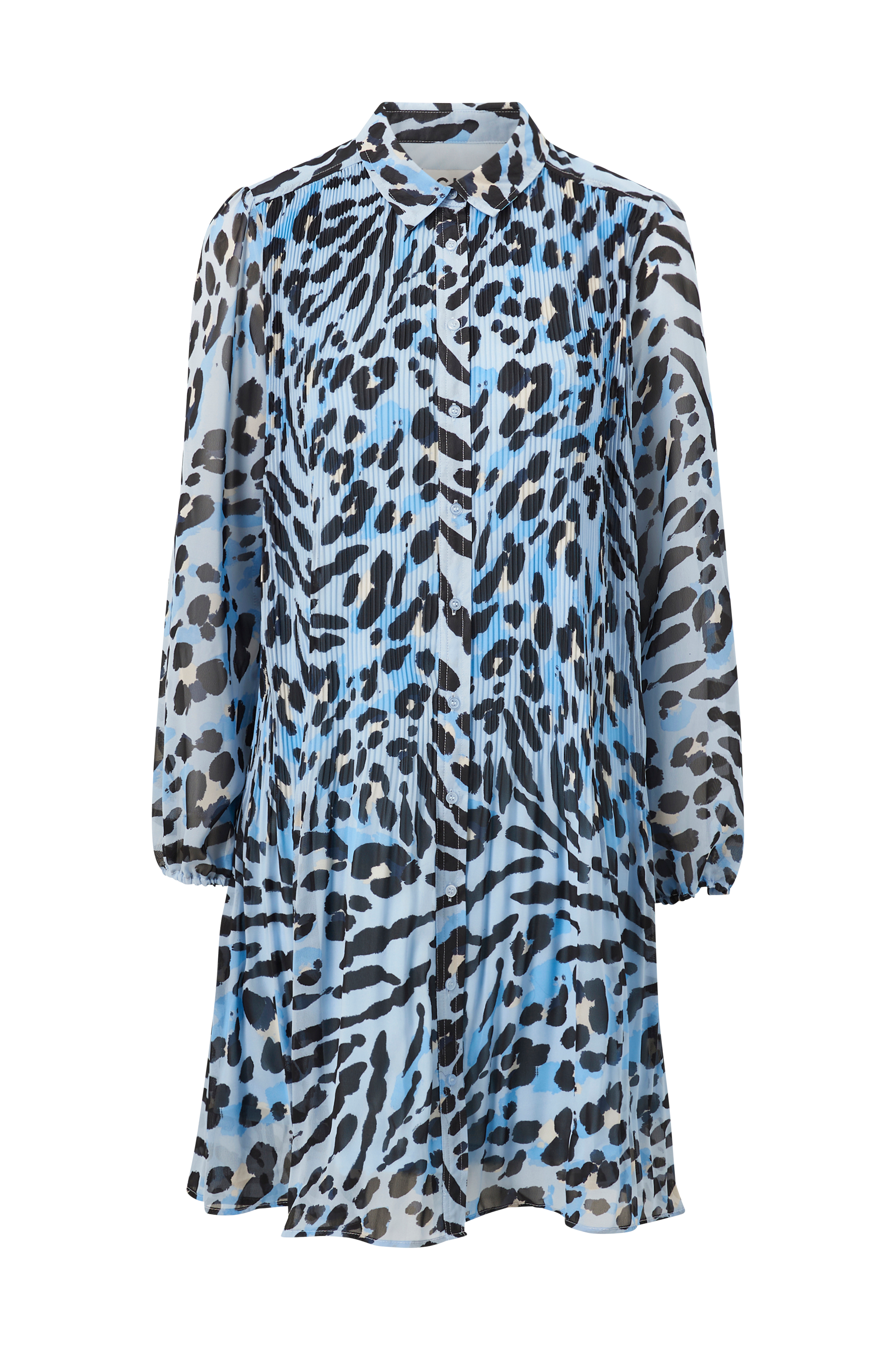 • Kort kjole i plissertt chiffon• Knapper foran• Trikotfôr• Lengde: 96 cm i størrelse 36• Produktet inneholder gjenvunnet materiale som er brukt for å redusere mengden avfall, samtidig som det ikke er brukt nye ressurser.