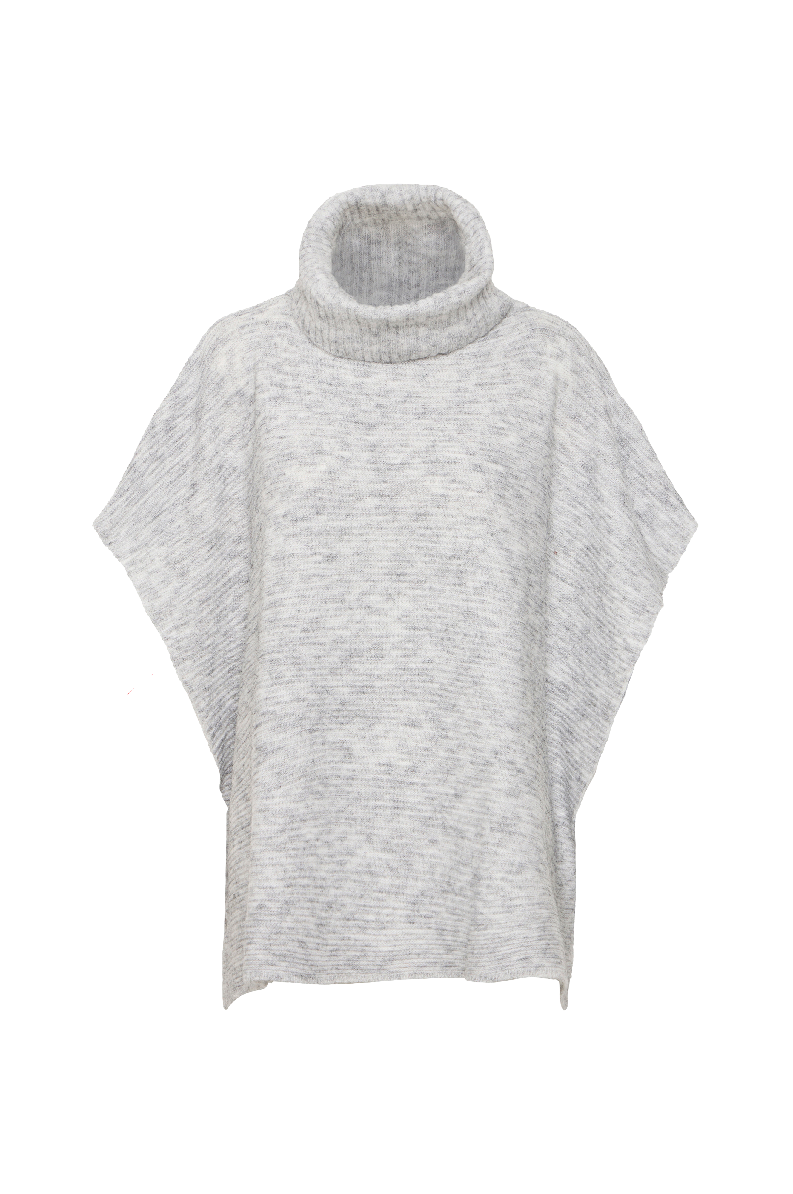 • Ribbestrikket, myk poncho• Høy, nedovervendt krage