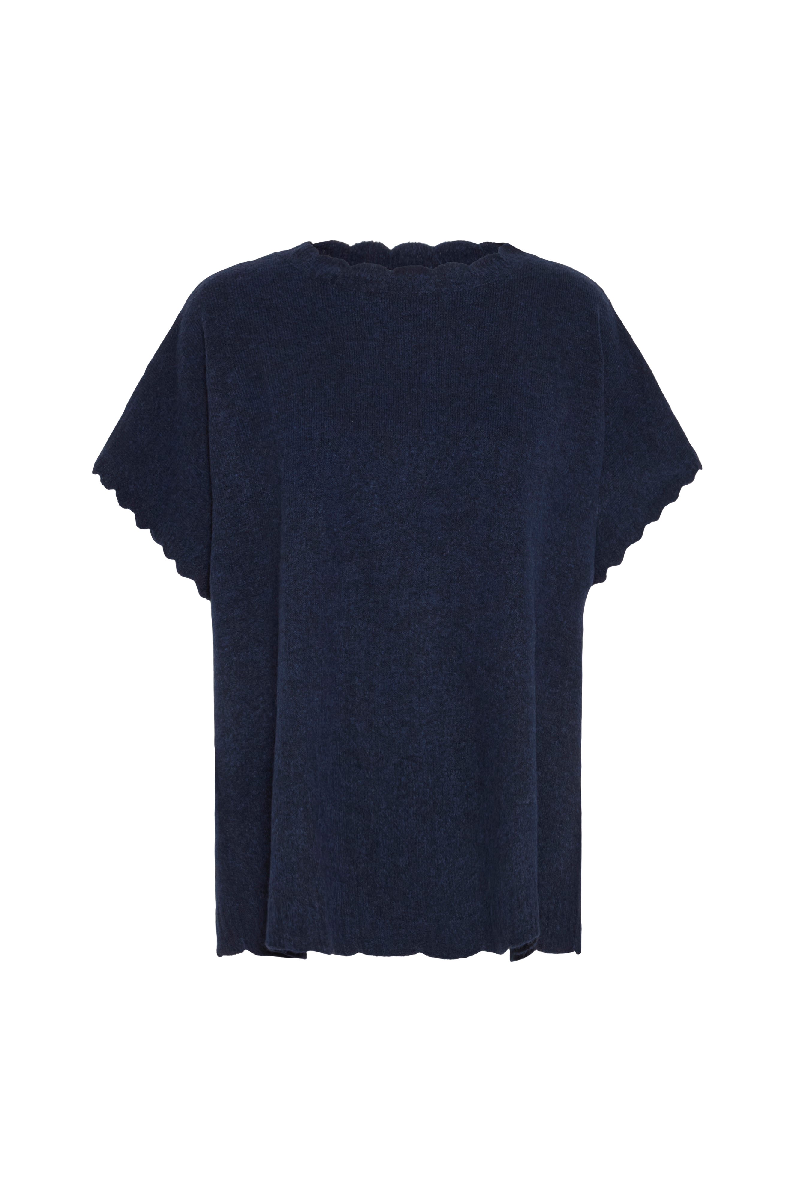 • Myk, finstrikket poncho• Rund, bølget hals• Åpninger i sidene• Bølgede kanter• Avslappet passform