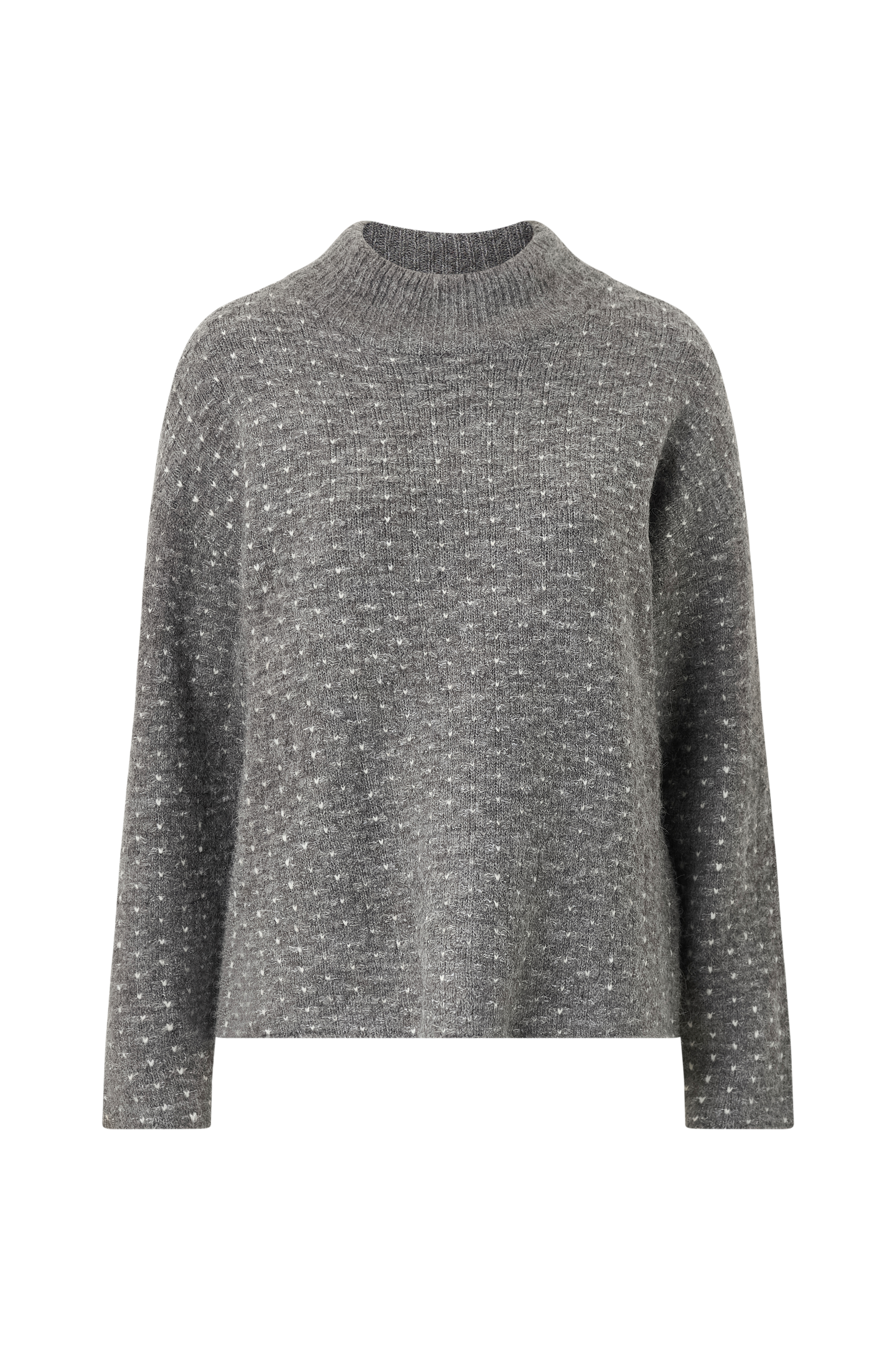 • Langermet, mønsterstrikket pullover• Høy, ribbet krage