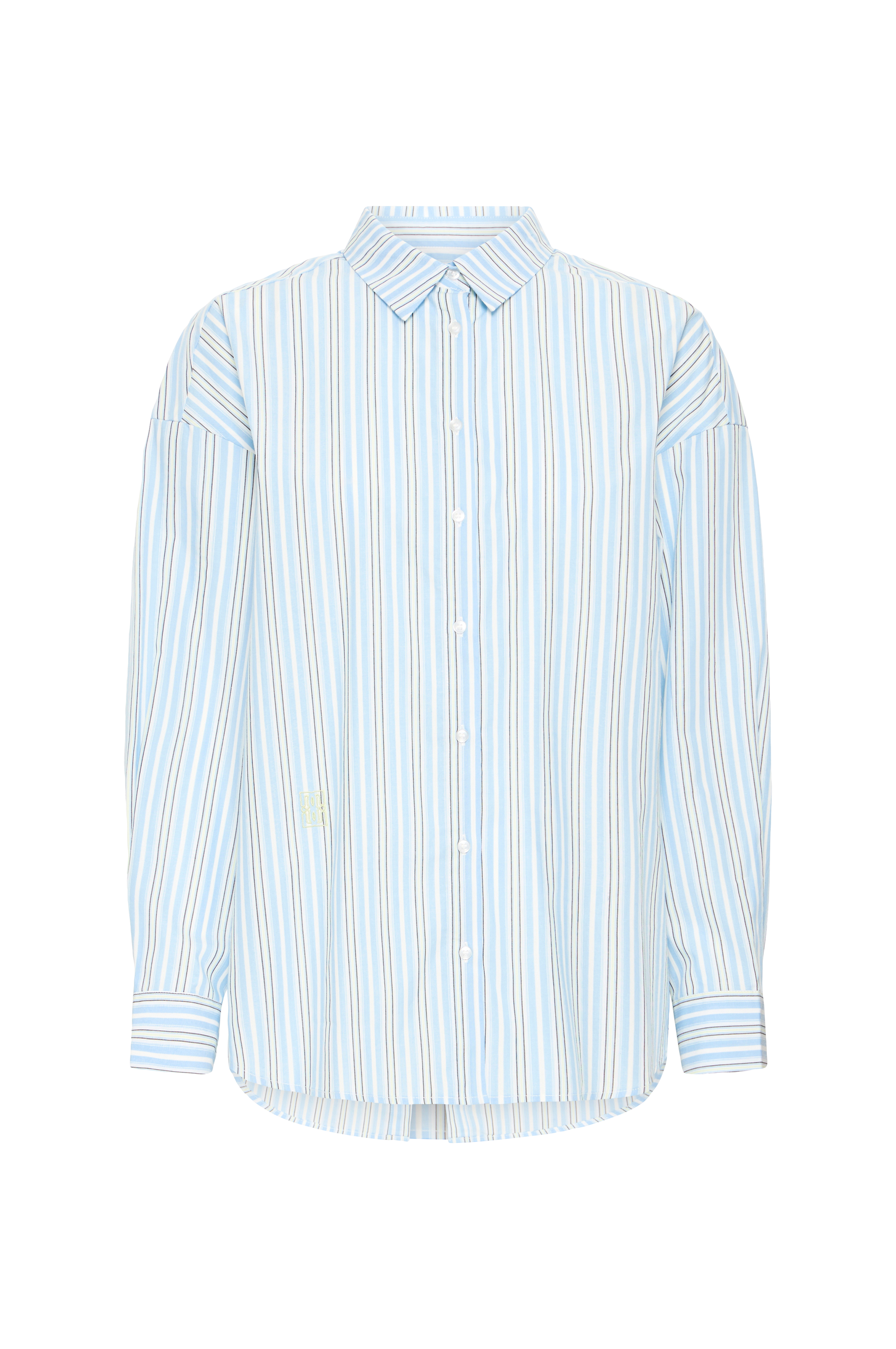 • Langermet skjorte i bomull• Knapper hele veien fram• Avrundet hem med litt lengre bakside• Brodert logo nederst på siden