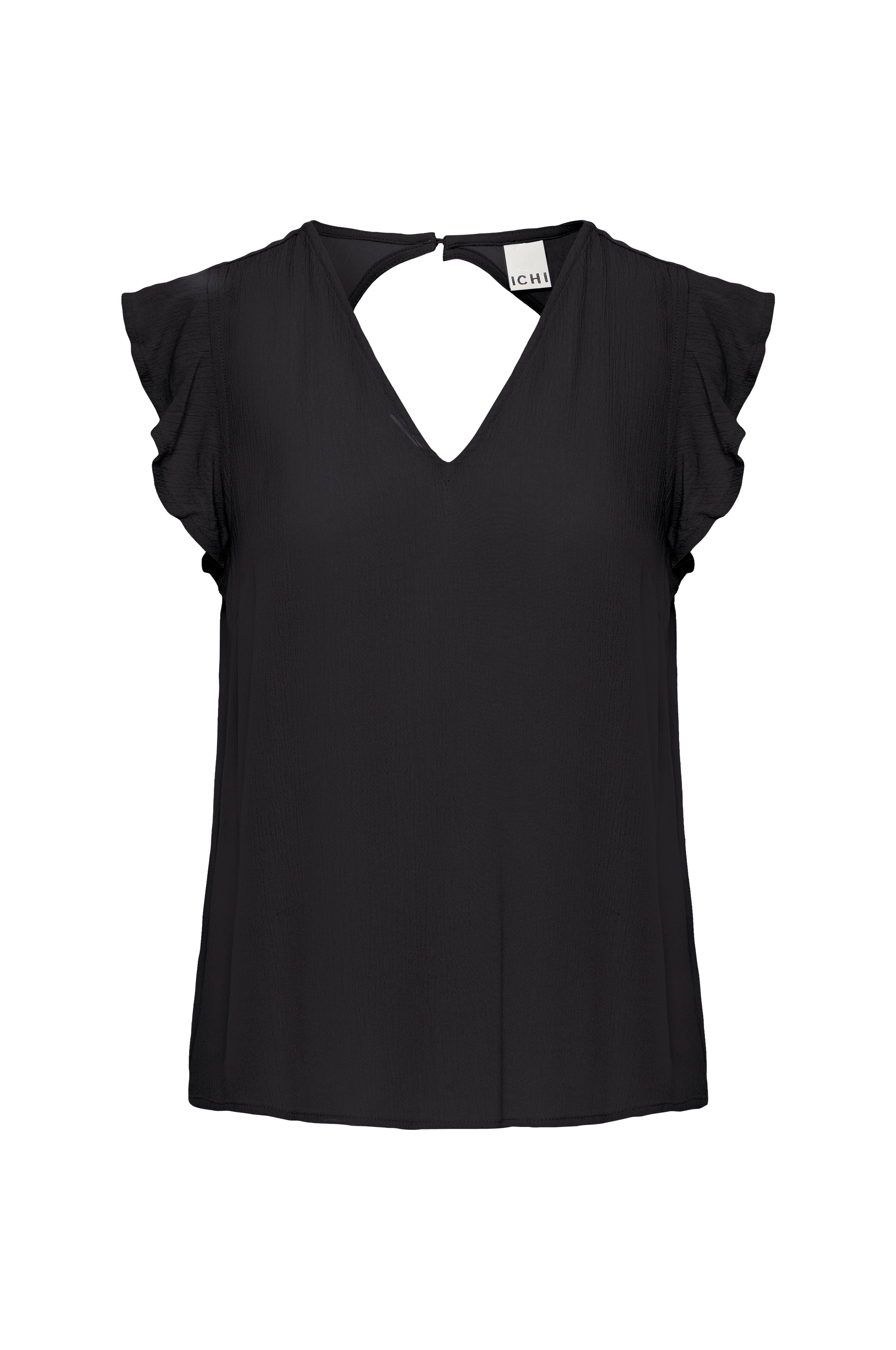 • Litt utsvinget modell i krepp• V-hals snitt i halsen og i nakken med knapp oppover ryggen• Volang rundt ermehullene