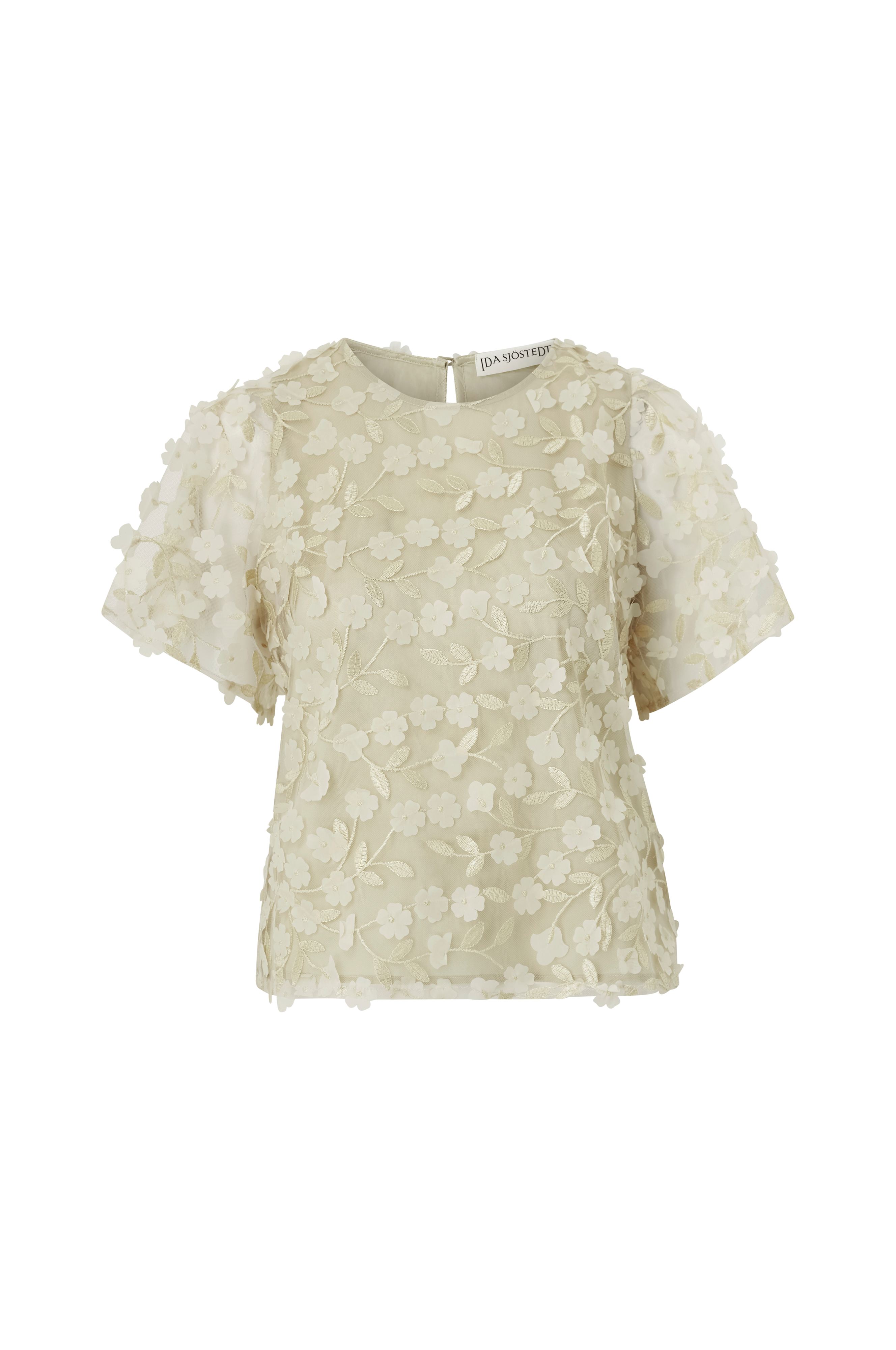 • Lett figurformet modell i mesh med blomstret applique