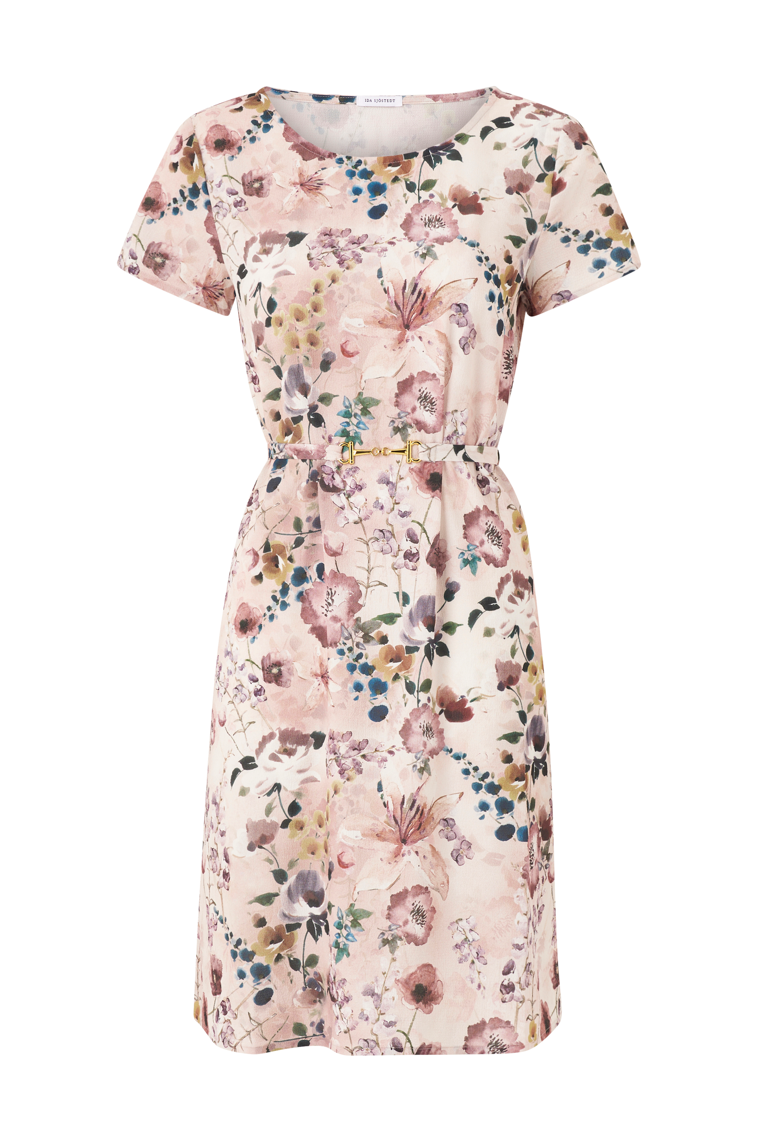 • Blomstret kjole• Korte ermer• Knytbart belte med metallspenne• Kreppet kvalitet• Lengde: 95 cm i størrelse 36