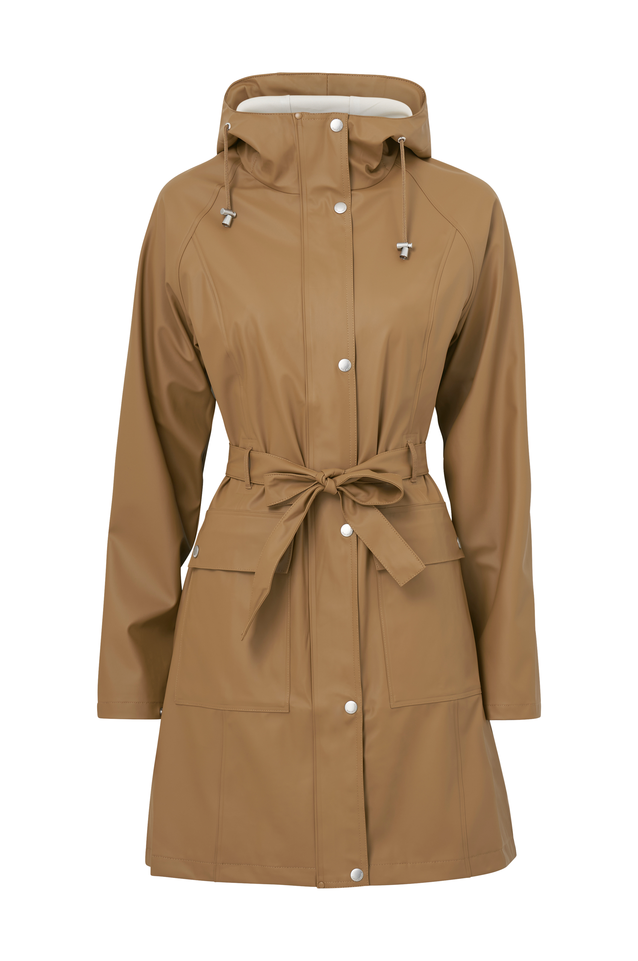 Regnfrakk Rain 70 fra Ilse Jacobsen er vind- og vanntett med teipede sømmer. Vannsøyle 5000 mm. Fast hette med snøring og stoppere. Lukkes med YKK toveisglidelås og beskyttende vindstolpe med trykknapper. Regulerbar vidde i ermekantene med trykknapp. Knytebelte i midjen. To lommer foran med lommeklaff og trykknapper. Lengde ca. 93 cm i str M.