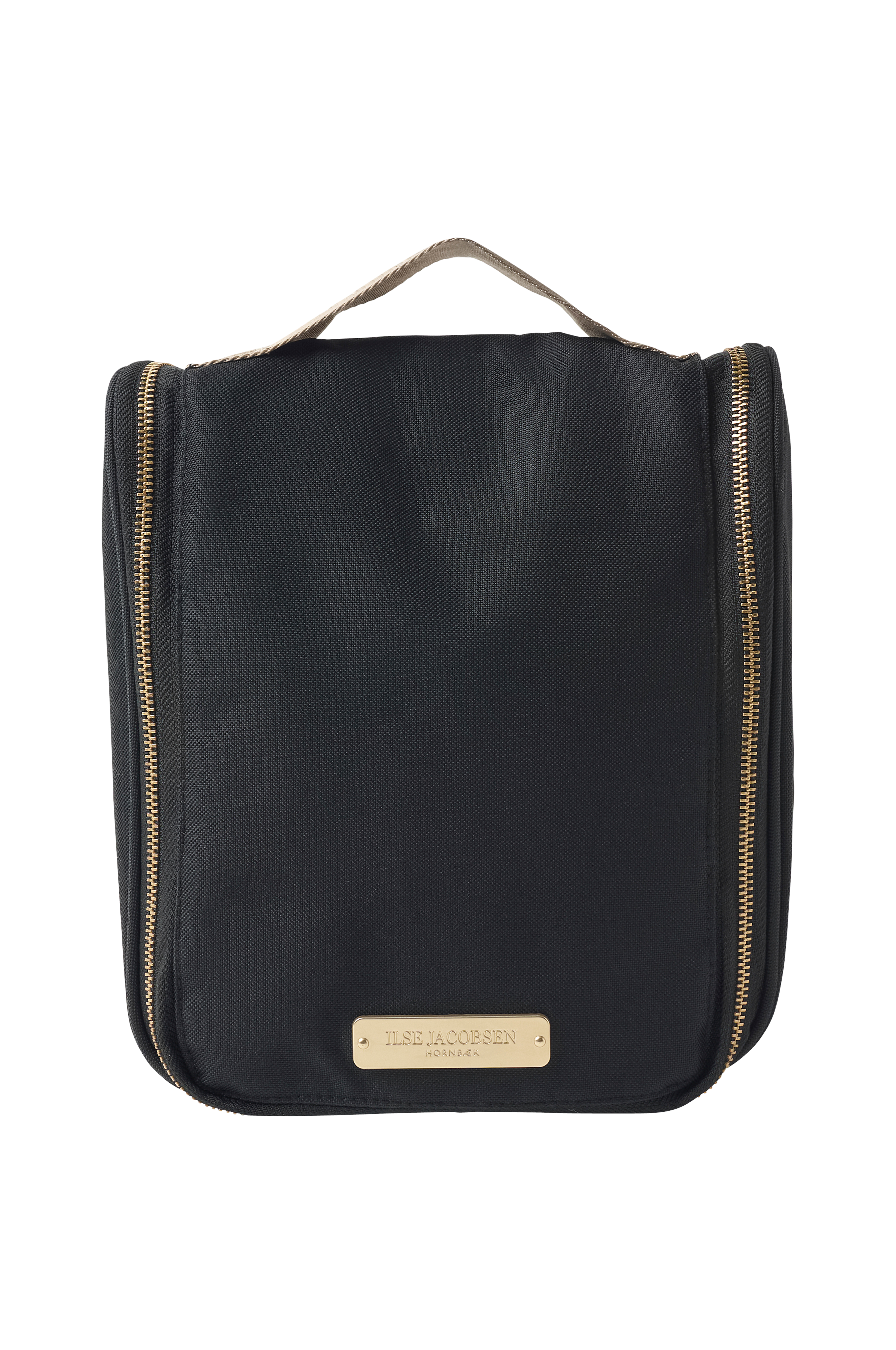 • Hengbar toalettmappe med metallogo• Hovedlomme med to-veis glidelås• En innvendig glidelåsrom• To innerlommer med lokk og fire åpne innerlommer• Tekstilfôr