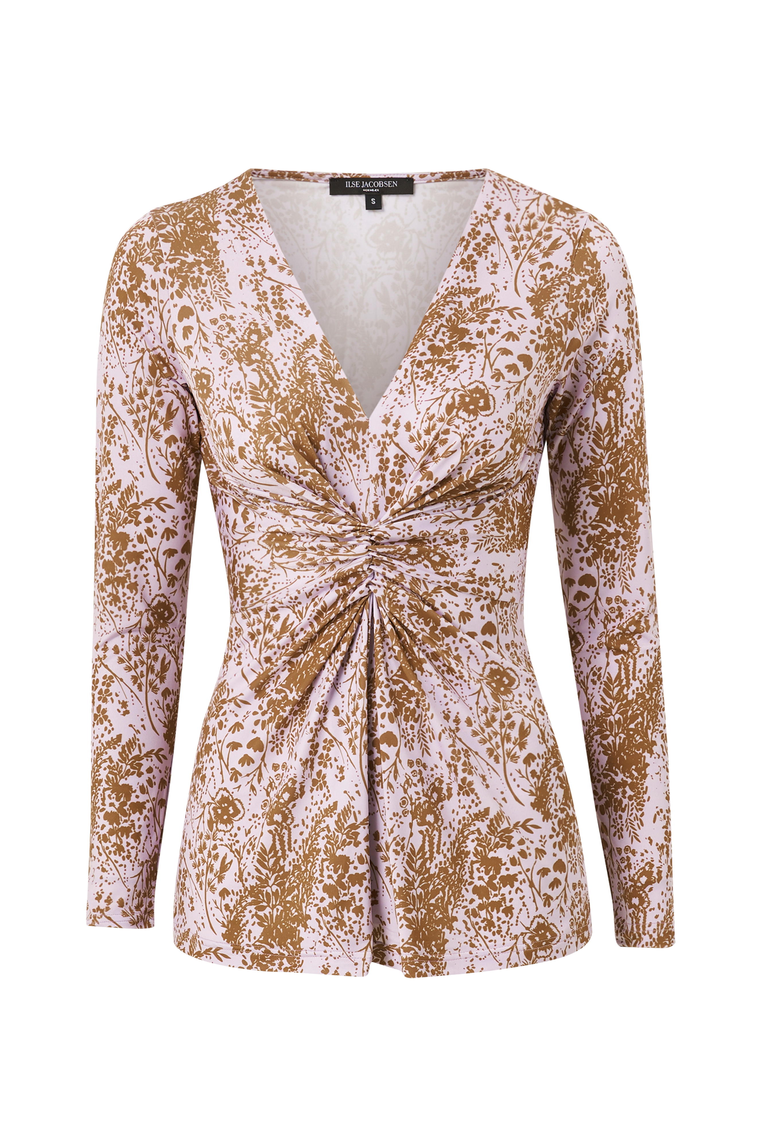 • V-hals snitt• Knutedrapering foran• Lange ermer• Laget av myk tricot