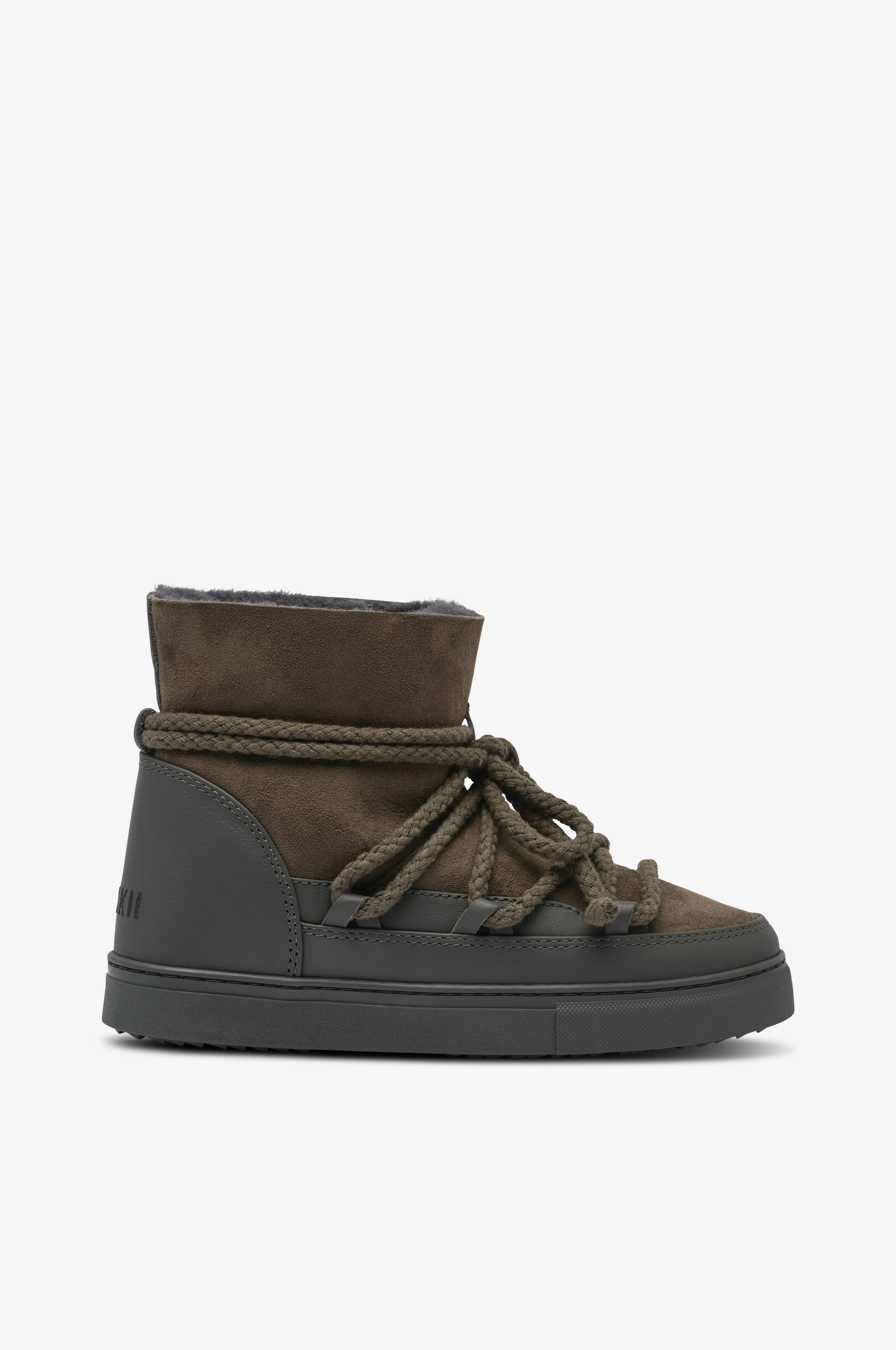 • Øvre del i semsket skinn og skinn • Dekorativt, flettett snøre rundt skaftet • Innsidefôr i fårepels • Yttersåle i gummi • Skafthøyde: 14 cm i størrelse 37