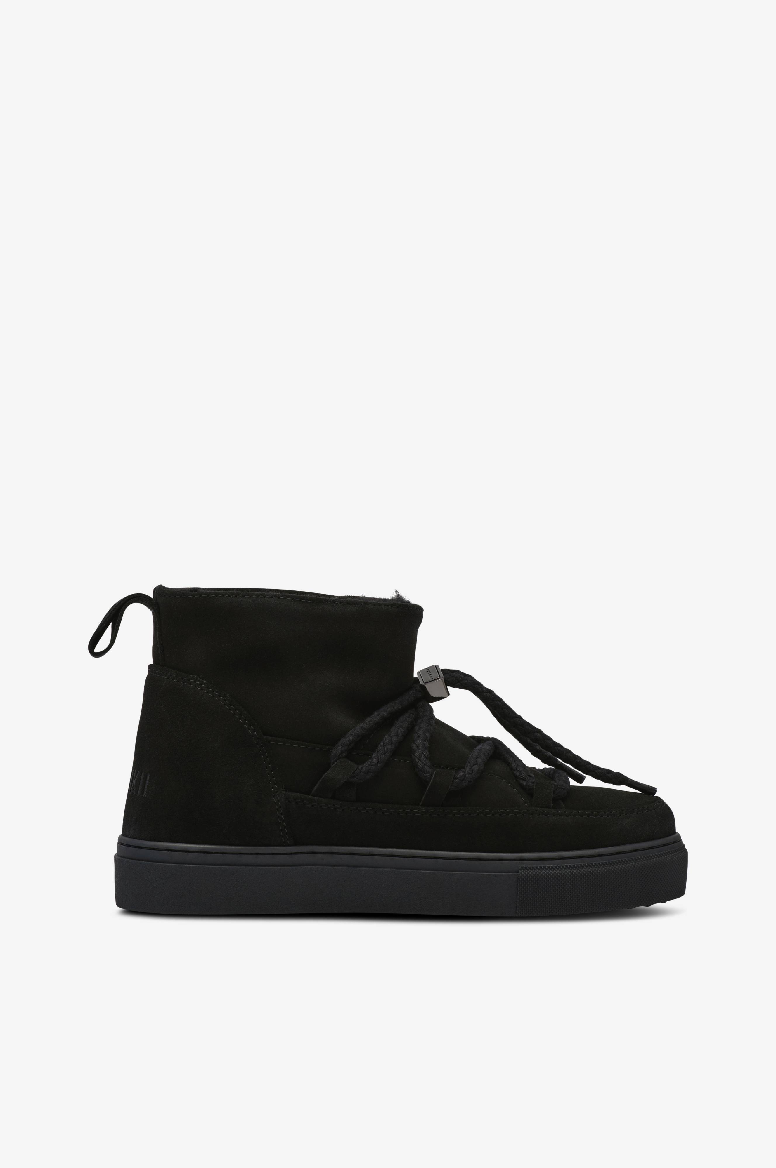 • Øvre del i mykt semsket skinn • Varm foring i fårepels • Snøring med stopper i gullfarget metall • Brodert logo baktil • Yttersåle i gummi • Skafthøyde: 11 cm i størrelse 37