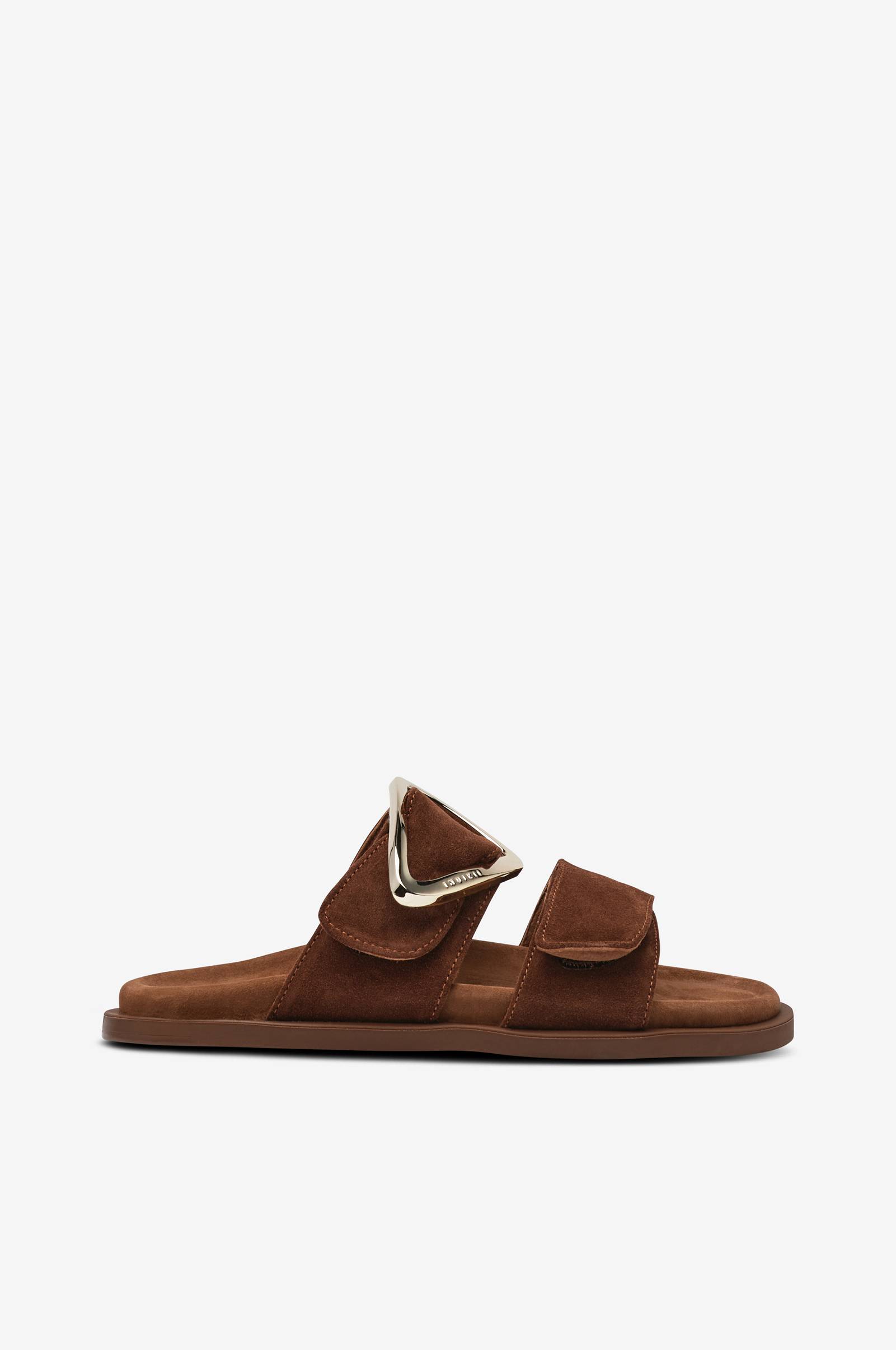 • To justerbare stropper i semsket skinn med borrelåsfeste• Stor, dekorativ spenne på en stropp• Innsidefôr i semsket skinn• Anatomisk fotseng kledd i semsket skinn• Yttersåle i gummi