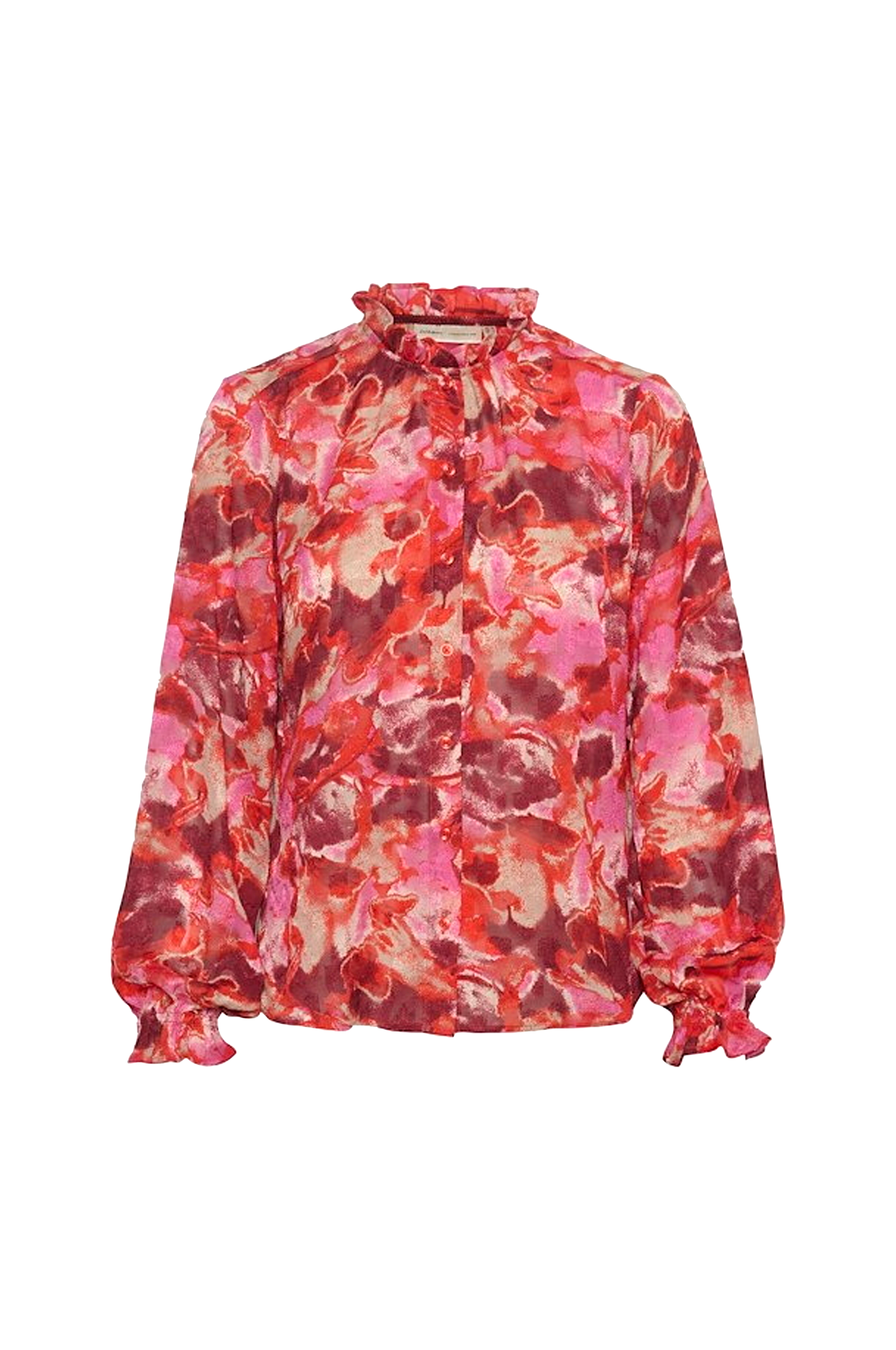 • Rett modell med vevd mønster• Liten volang i halsen• Knapper foran• Langt erme med elastisk strikk på bunnen