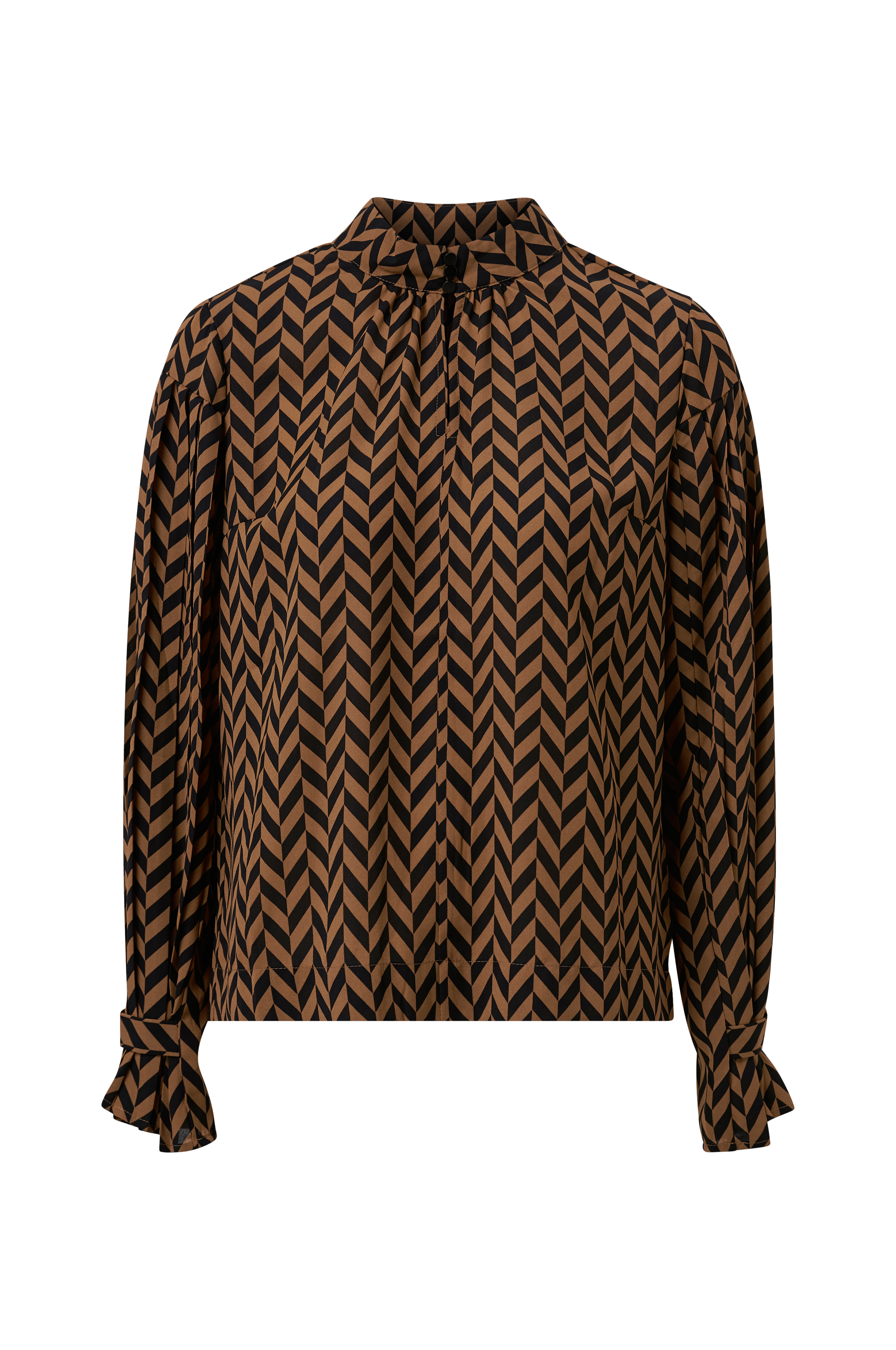 Bluse PolomaIW Blouse fra InWear. Rett modell med liten ståkrage som har rynker, splitt og kledde knapper foran. Lange, vide ermer med plissert legg og tamp med trykknapp nederst.