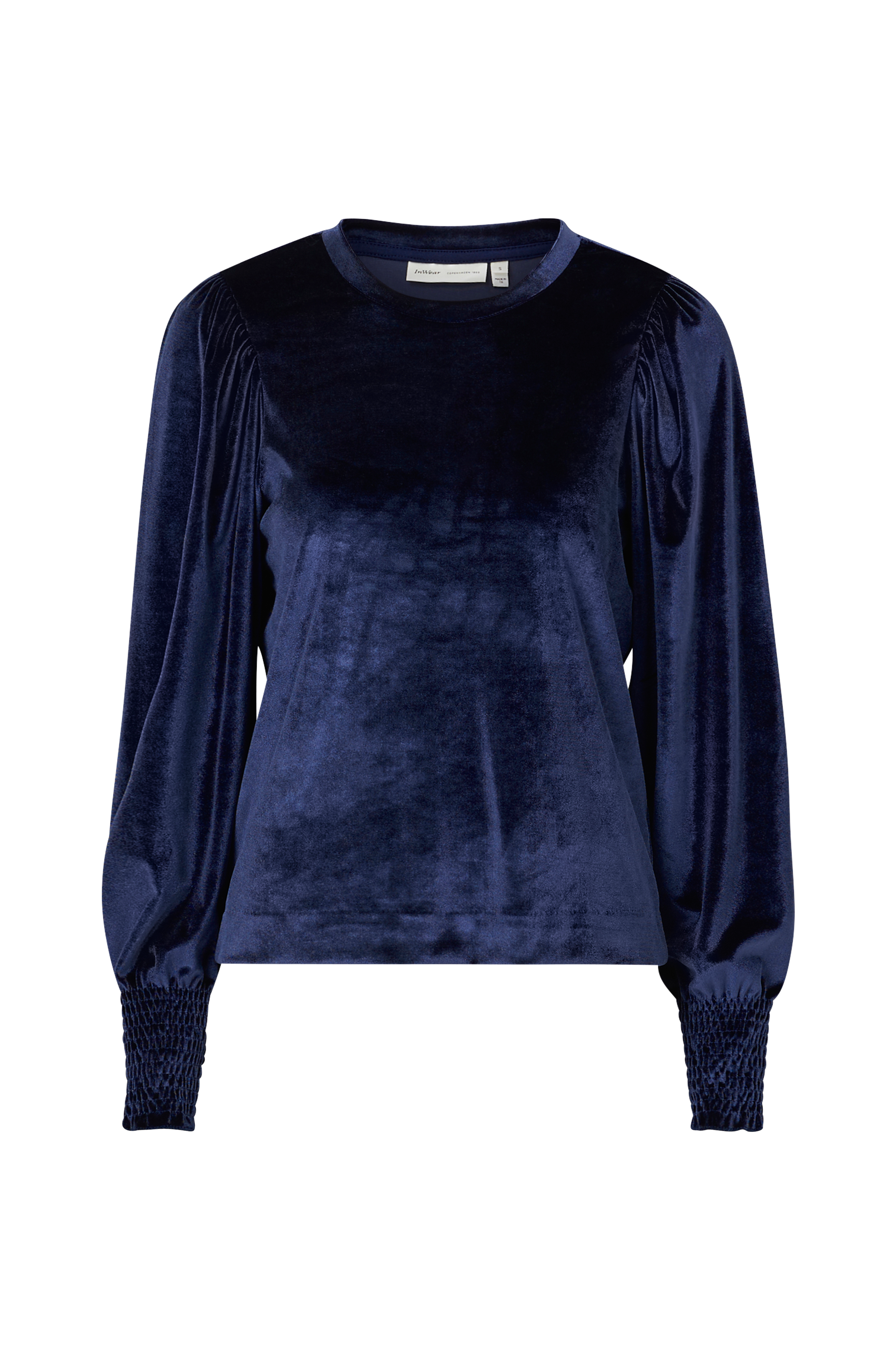 Topp OrielIW Blouse fra InWear. Rett modell i velur med lange, vide puffermer som har rynker ved skulderen og bred vaffelstrikk i ermekanten.