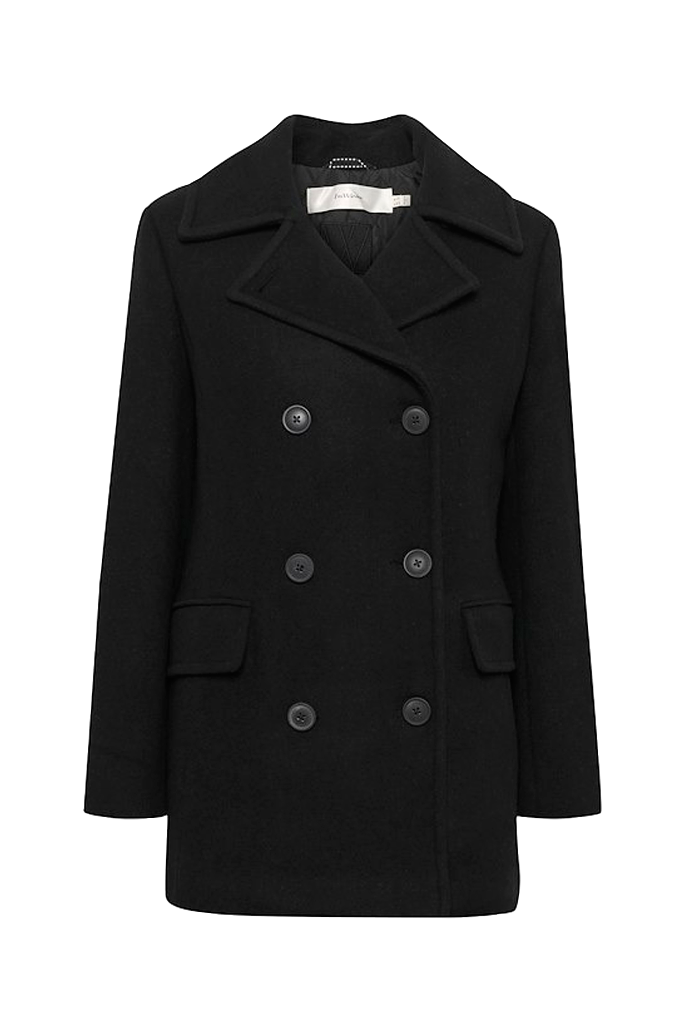 • Kåpe i ullblanding • Krage med jakkeslag • Lukking med doble knapper • Vattert foring • To lommer med lokk • Normal passform • Lengde: 75 cm i størrelse 36