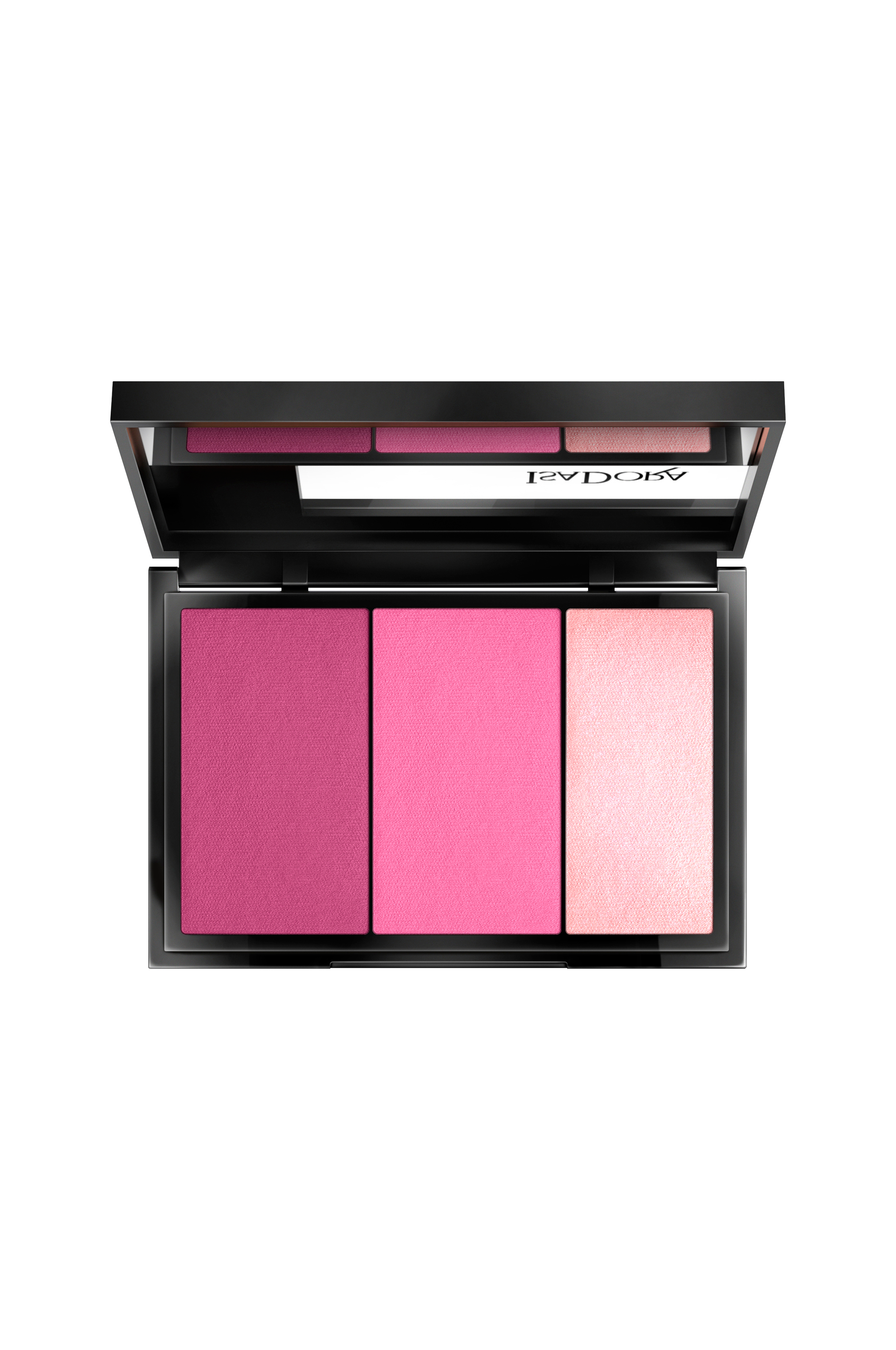 Alt i et-rougepalett for å definere, gi farge og fremheve dine ansiktstrekk. Gi ansiktet glød, løft og glow! Isadora rougetrio inneholder tre rikt pigmenterte nyanser av kremet pudder. Påfør for å definere kinnben og konturer, gi
