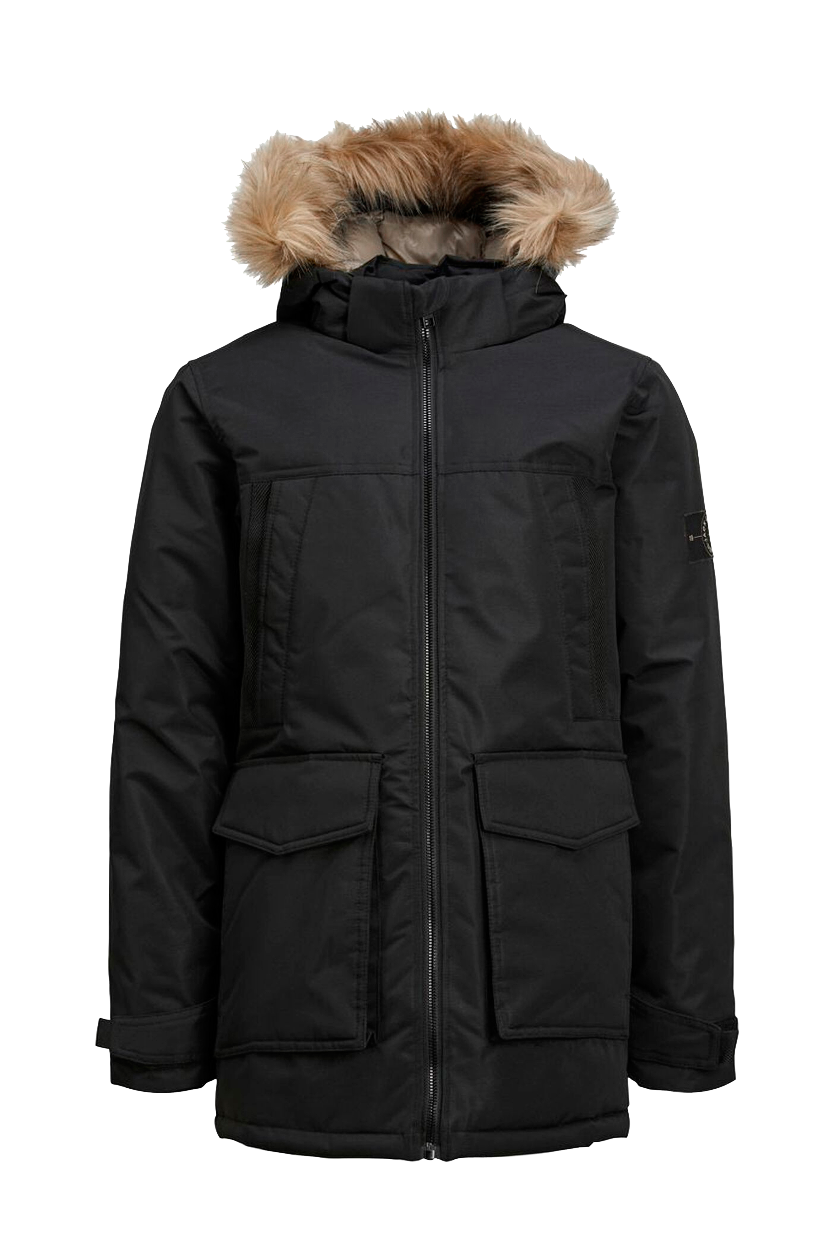 • Rett modell• Vannavstøtende kvalitet med vattert, polstre foring• Glidelås foran med beskyttelse ved haken• Avtakbar hette med avtagbar kant i kunstig skinn• Innfelte brystlommer med trykknapp• Fire store lommer