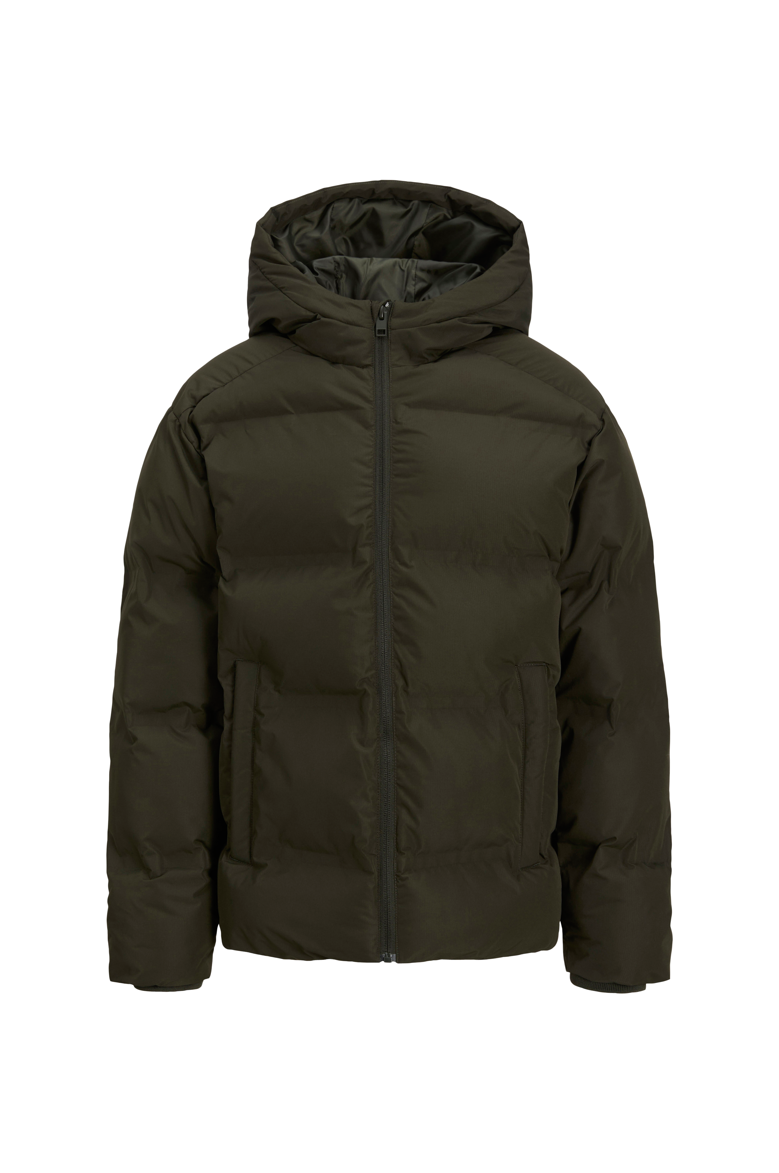 • Vannavstøtende pufferjakke med hette• Høy krage• Ribbet mansjetter i ermeslutten• Glidelåslukking• Høy hals• Tekstilfôr• En innerlomme• To sidelommer med knappelukking