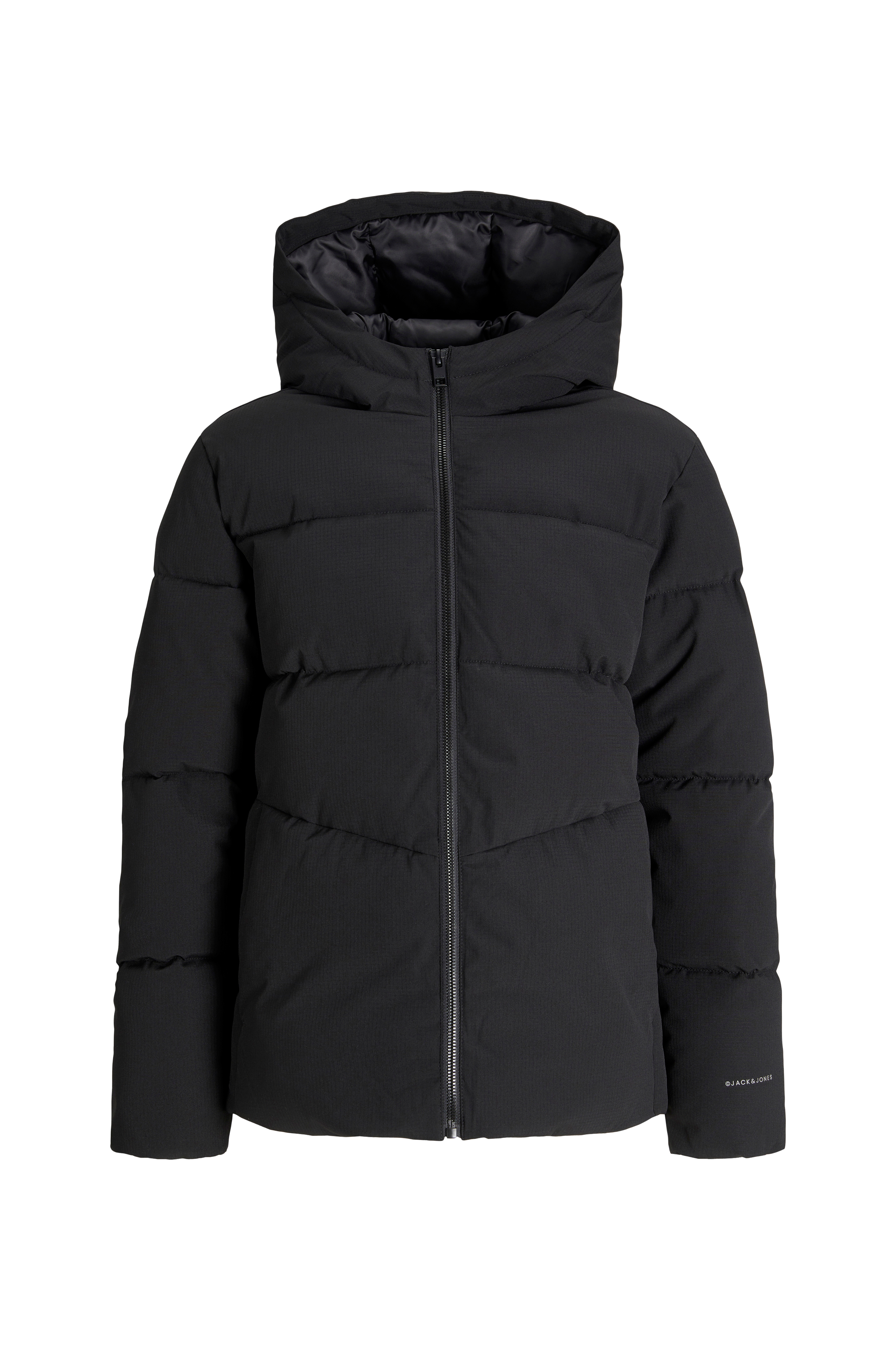 • Pufferjakke med fast hette• Elastiske ermeender• Glidelåslukking• Høy hals• Tekstilfôr• En innerlomme• To sidelommer• Reflekterende logo på det ene ermet