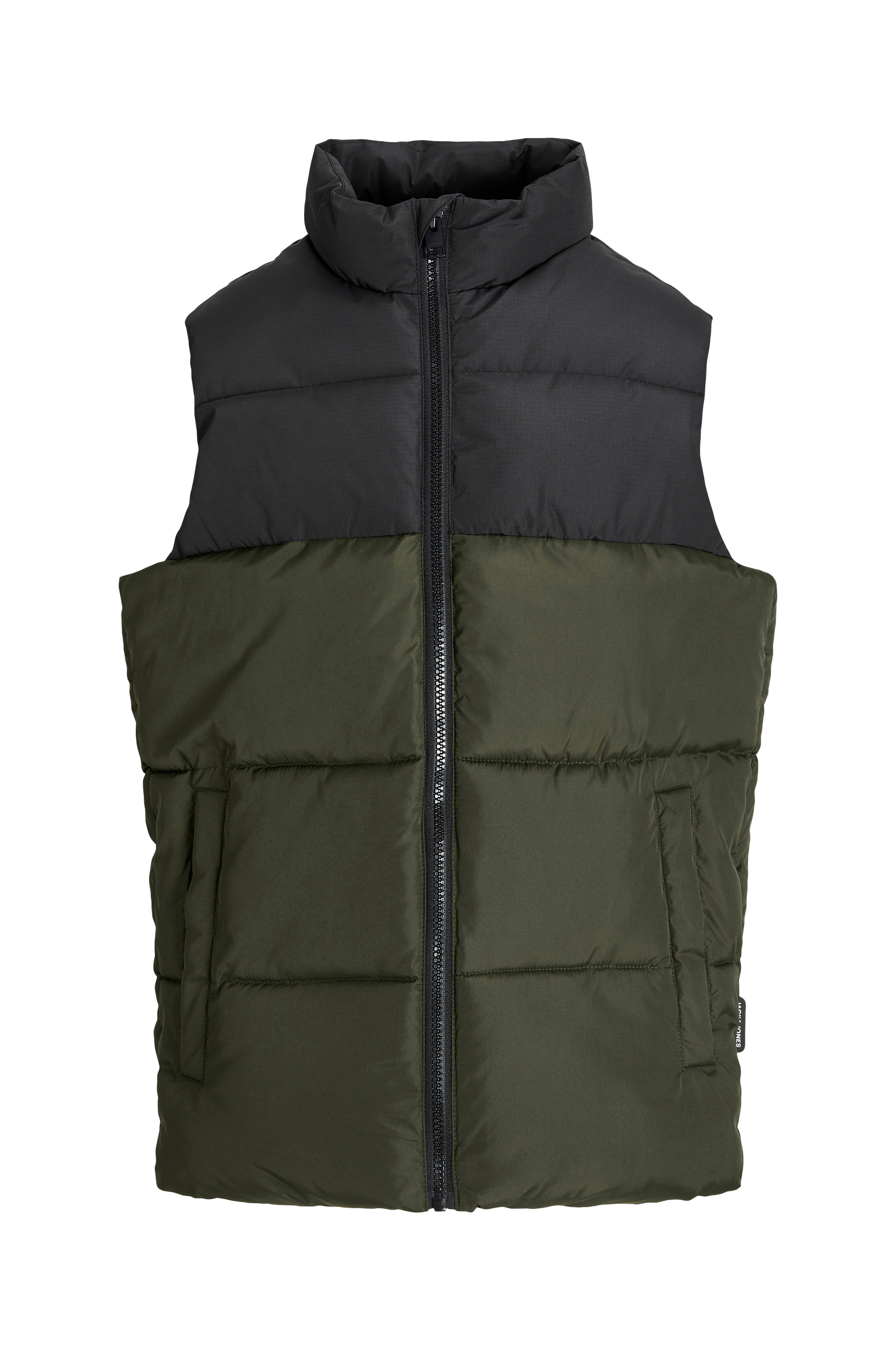 • Blokkfarget, polstre vest med vannavstøtende membran• Glidelås med høy hals• Sidelommer• Innerlomme