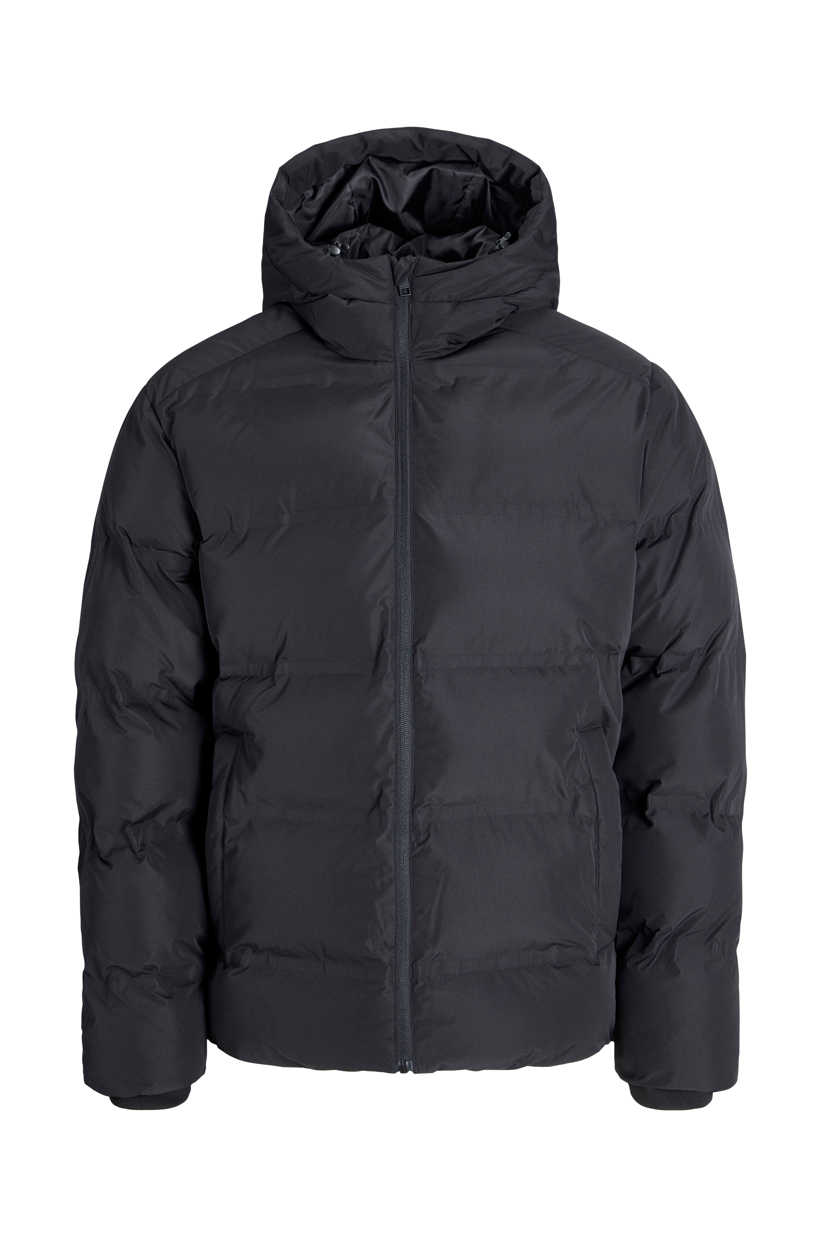 • Vannavstøtende pufferjakke med hette• Høy krage• Ribbet mansjetter i ermeslutten• Glidelåslukking• Høy hals• Tekstilfôr• En innerlomme• To sidelommer med knappelukking• Snøring i nedre kant• Lengde: 78 cm i størrelse 3XL