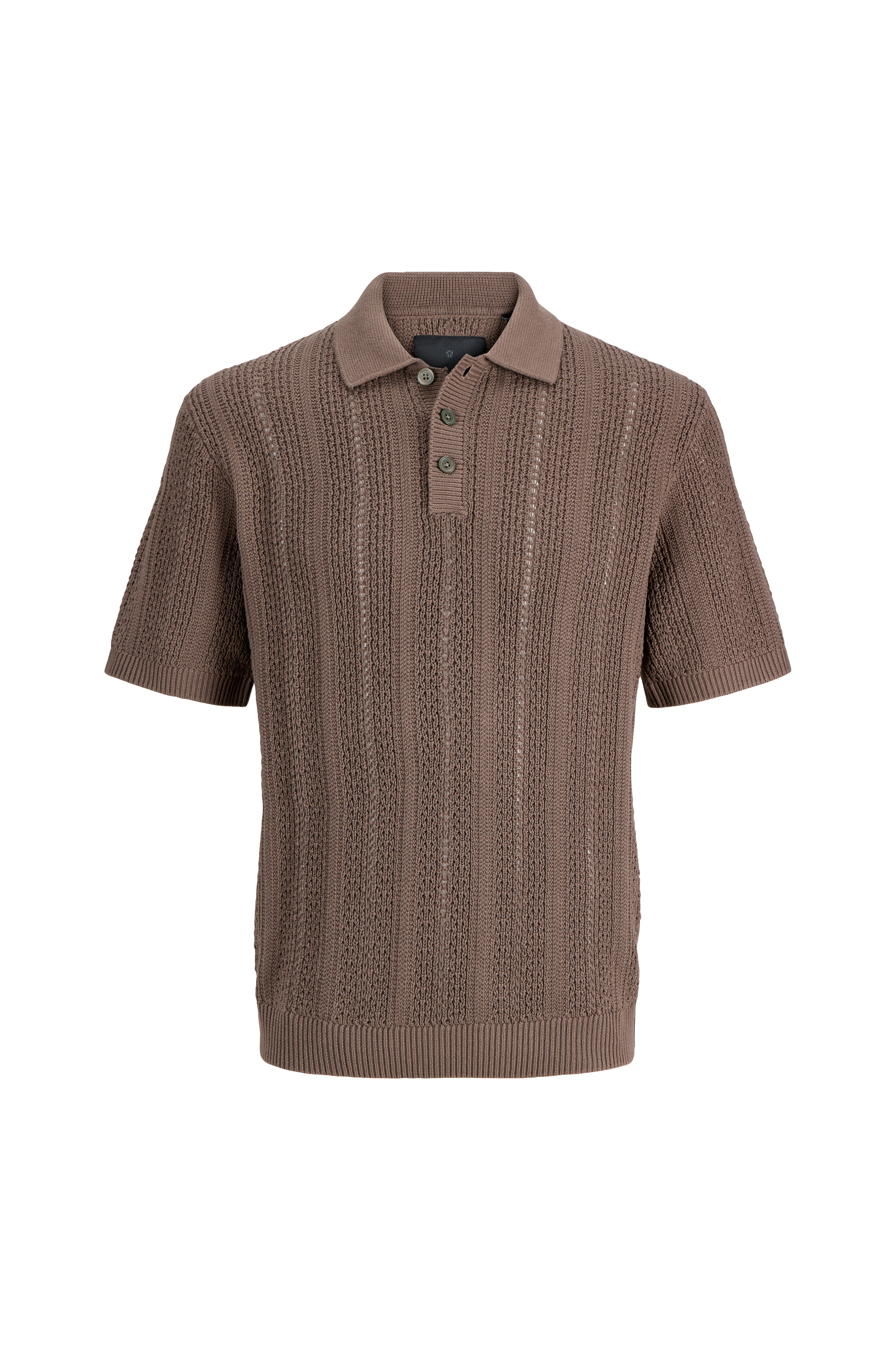 • Strukturstrikket genser med krage