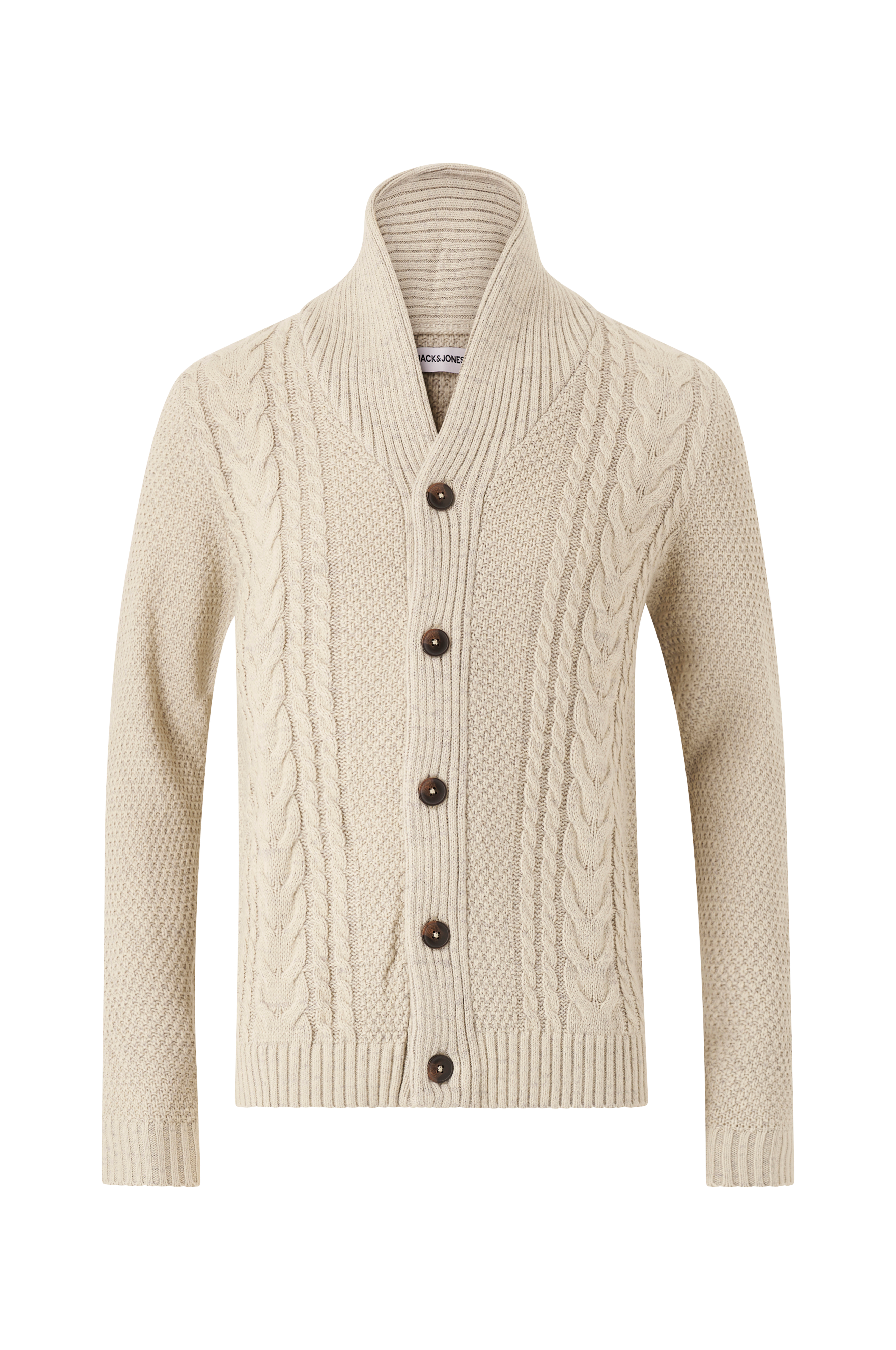 • Strukturstrikket kardigan med kabelstrikk foran
