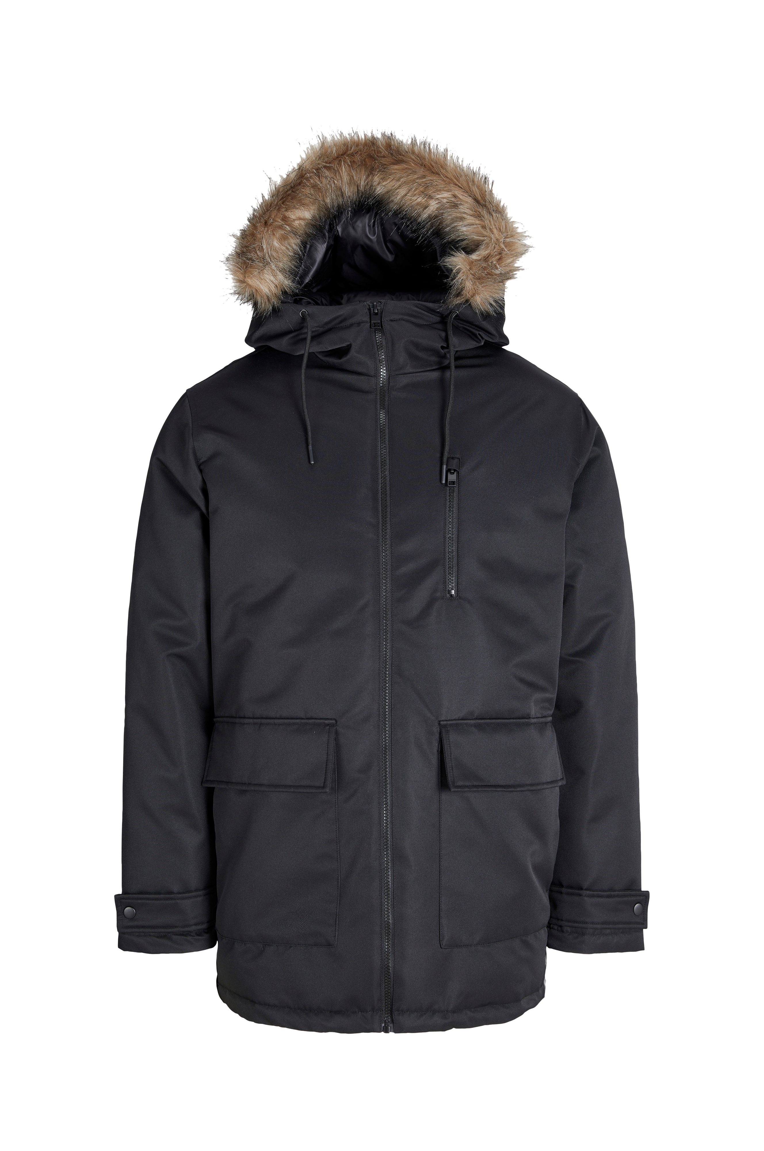 • Polstre parka • Vannavstøtende materiale • Fast, justerbar hette med avtagbar kant i fuskepels • Justerbare ermeender • Glidelåslukking • Tekstilfôr • En innerlomme • En utvendig glidelåslomme • To ytterlommer med lokk • Lengde: 84 cm i størrelse M