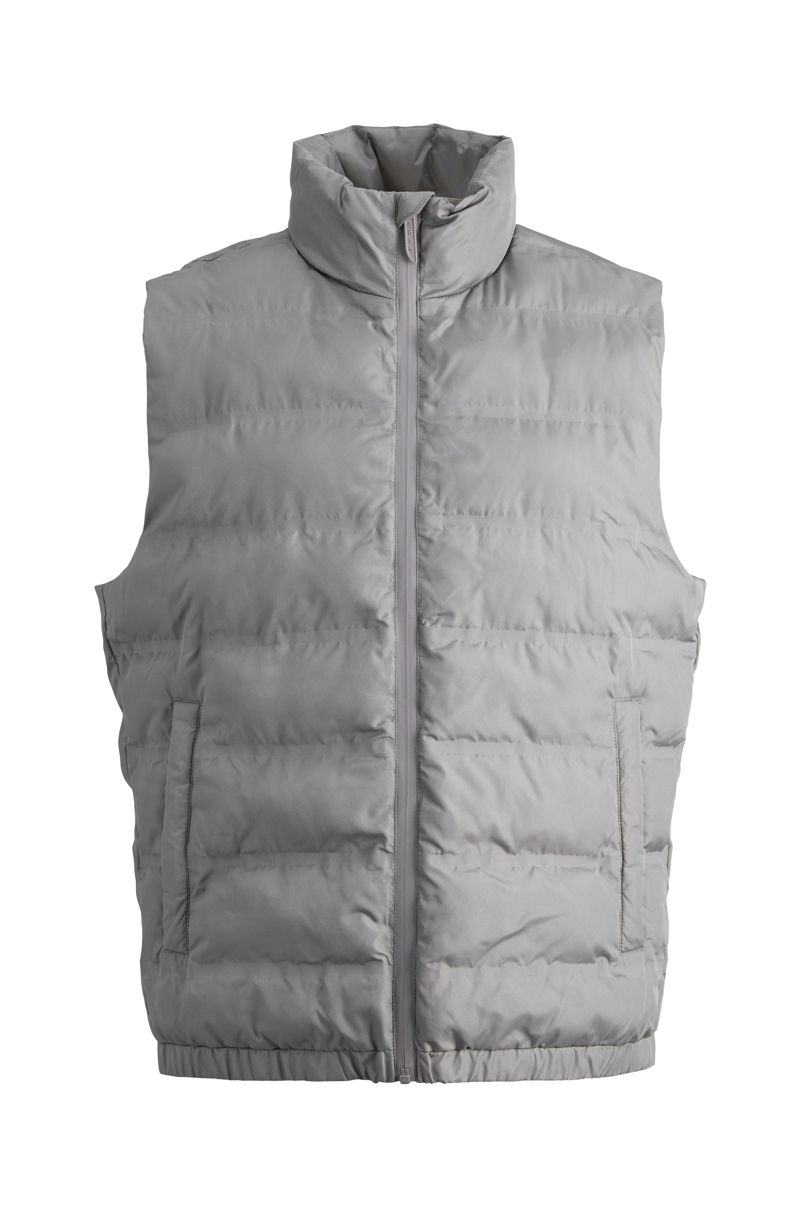 • Lett polstret vest• Vindtett, vannavstøtende materiale• Høy krage• Glidelåslukking• Høy hals• To lommer• Elastisk hem• Lengde: 70 cm i størrelse M