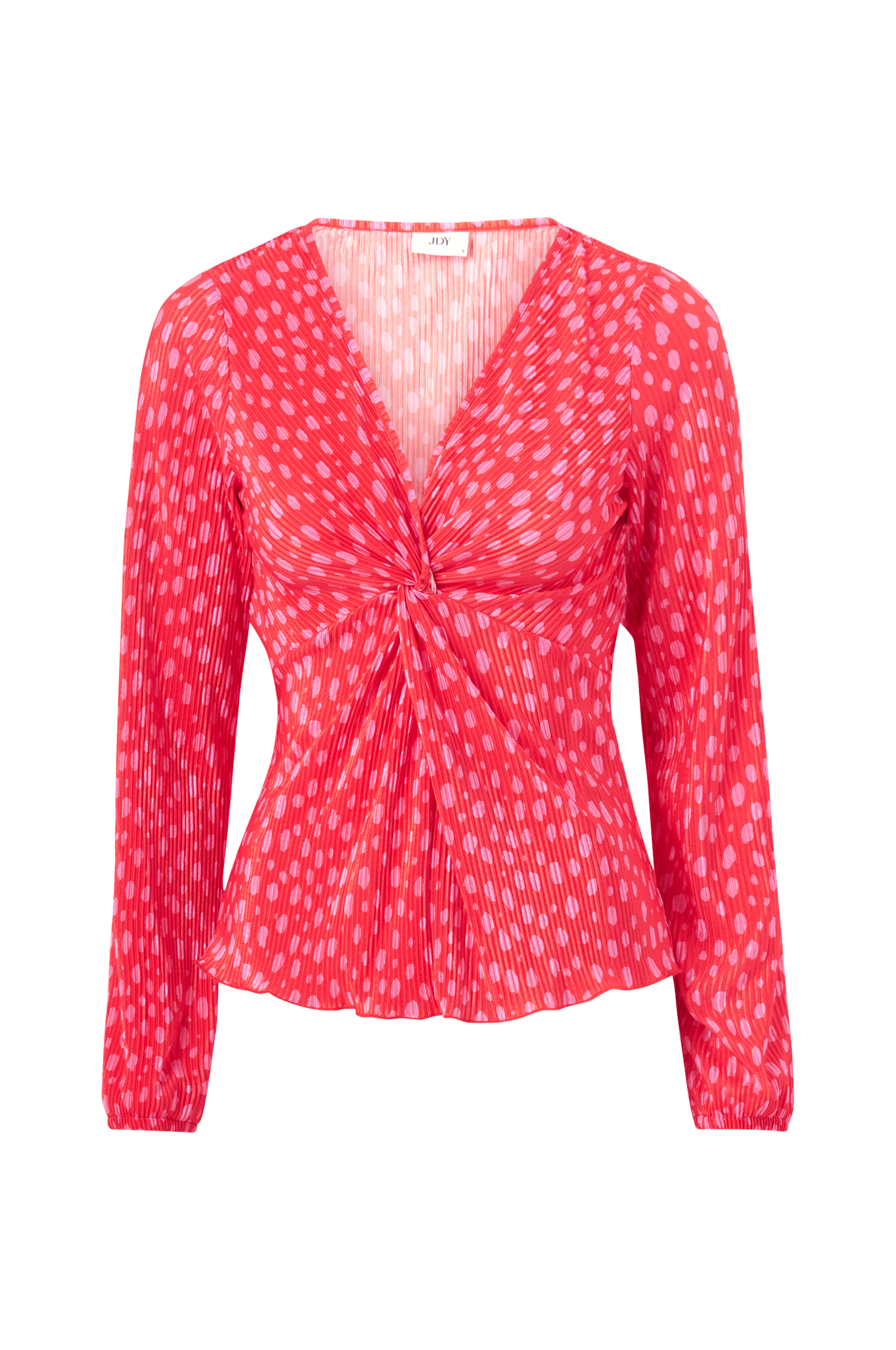 • Plissert bluse• V-hals snitt• Drapert, vridd detalj foran• Lange ermer med elastisk strikk i ermeslutten