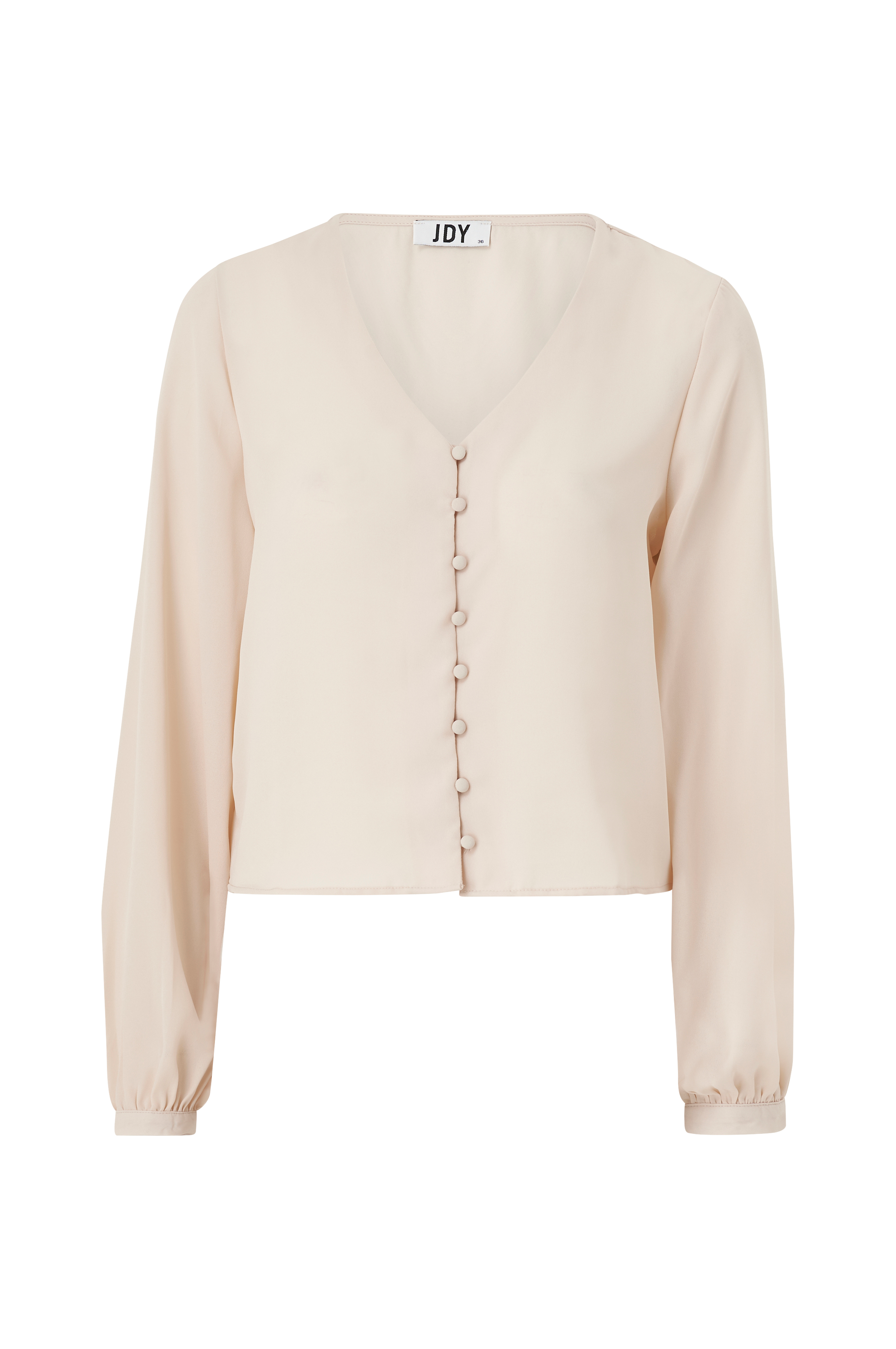 • V-hals snitt• Stoffdekkede knapper foran• Brede armer med tynn mansjett• Løs passform