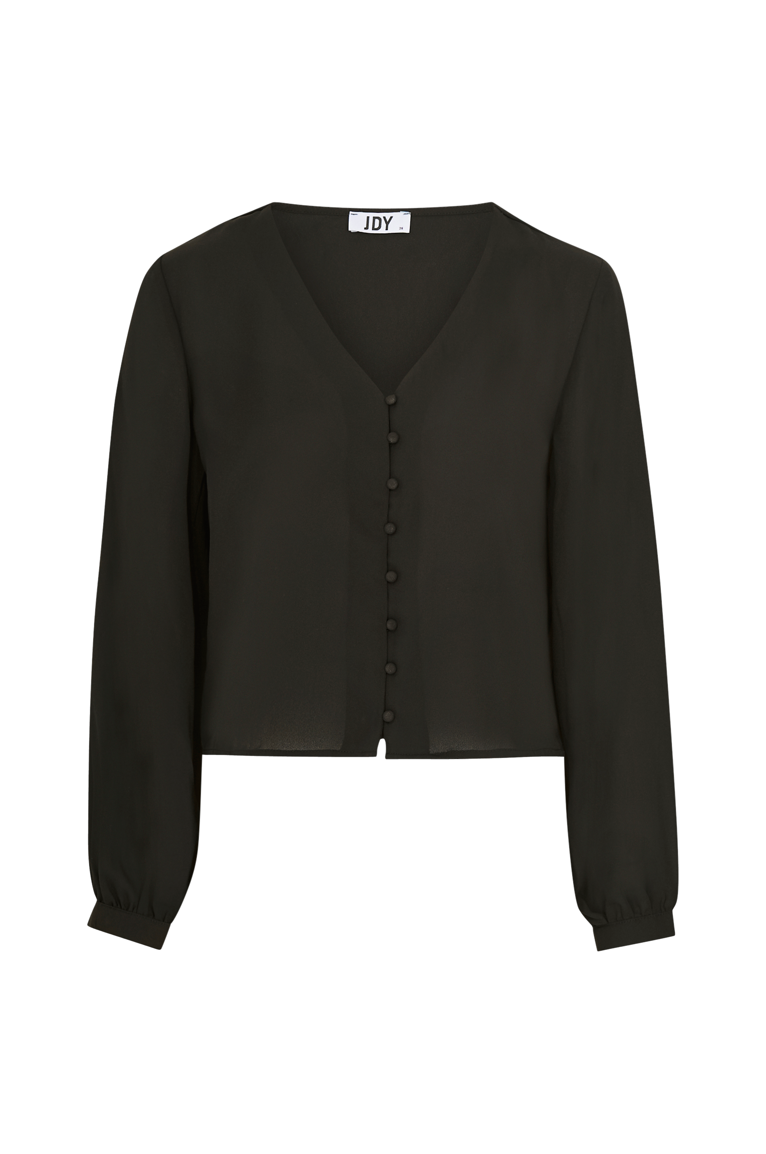 • V-hals snitt• Stoffdekkede knapper foran• Brede armer med tynn mansjett• Løs passform