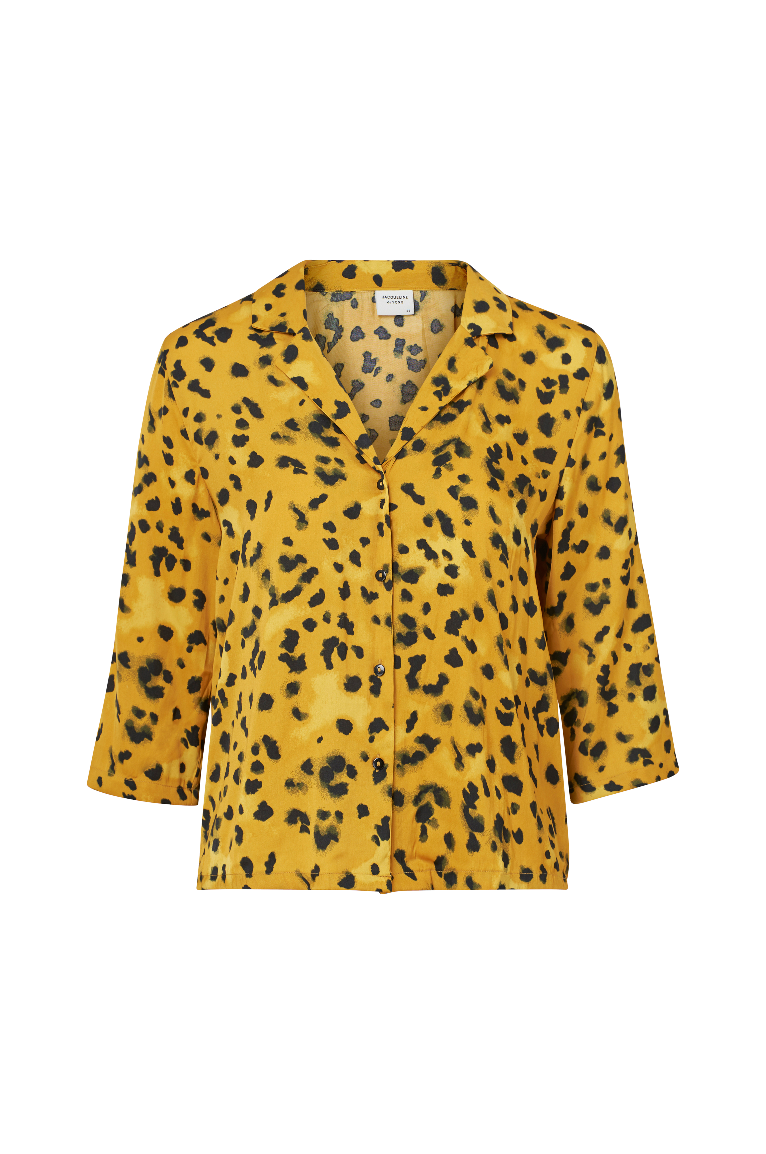 Bluse jdyRock 3/4 Top fra Jacqueline de Yong. Rett modell i sateng med krage, slag og knapping foran. 3/4-lange ermer med rett snitt og litt rynker ved skuldrene.