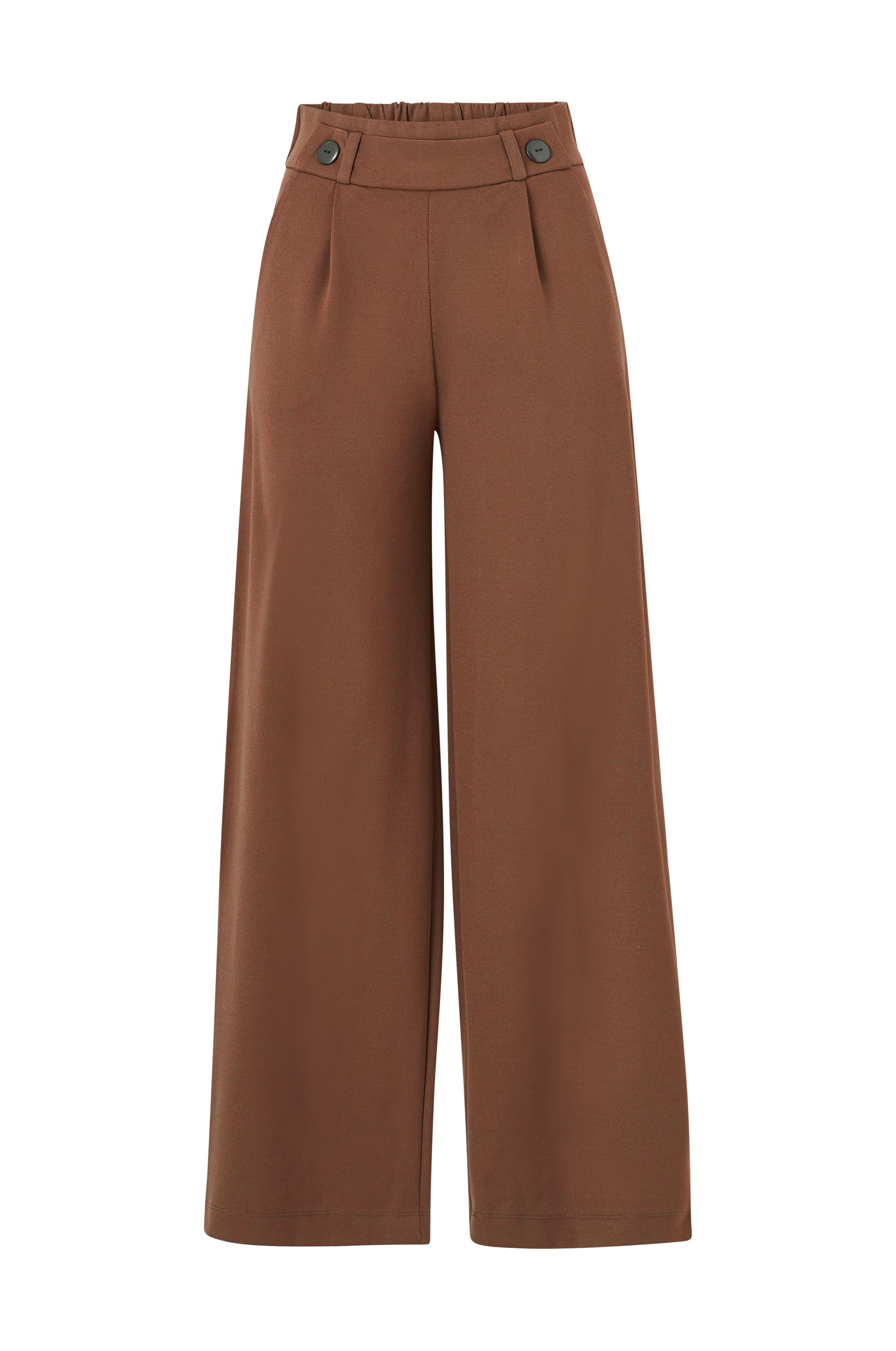 Bukse jdyGeggo New Long Pant fra Jacqueline de Yong med vide ben og høy, elastisk midje med lagte legg og dekorknapper foran. Lomme i sidene.