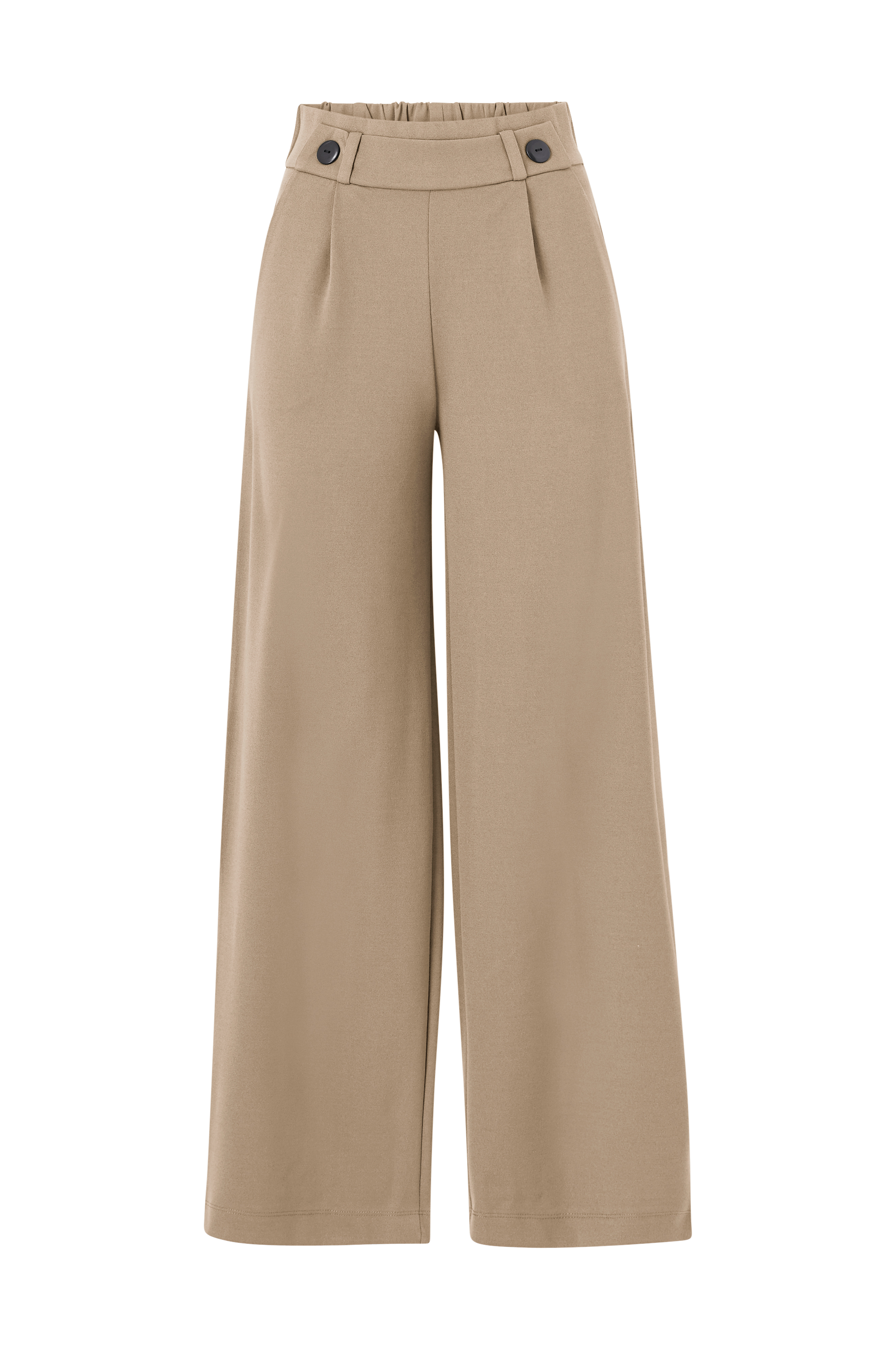 Bukse jdyGeggo New Long Pant fra Jacqueline de Yong med vide ben og høy, elastisk midje med lagte legg og dekorknapper foran. Lomme i sidene.