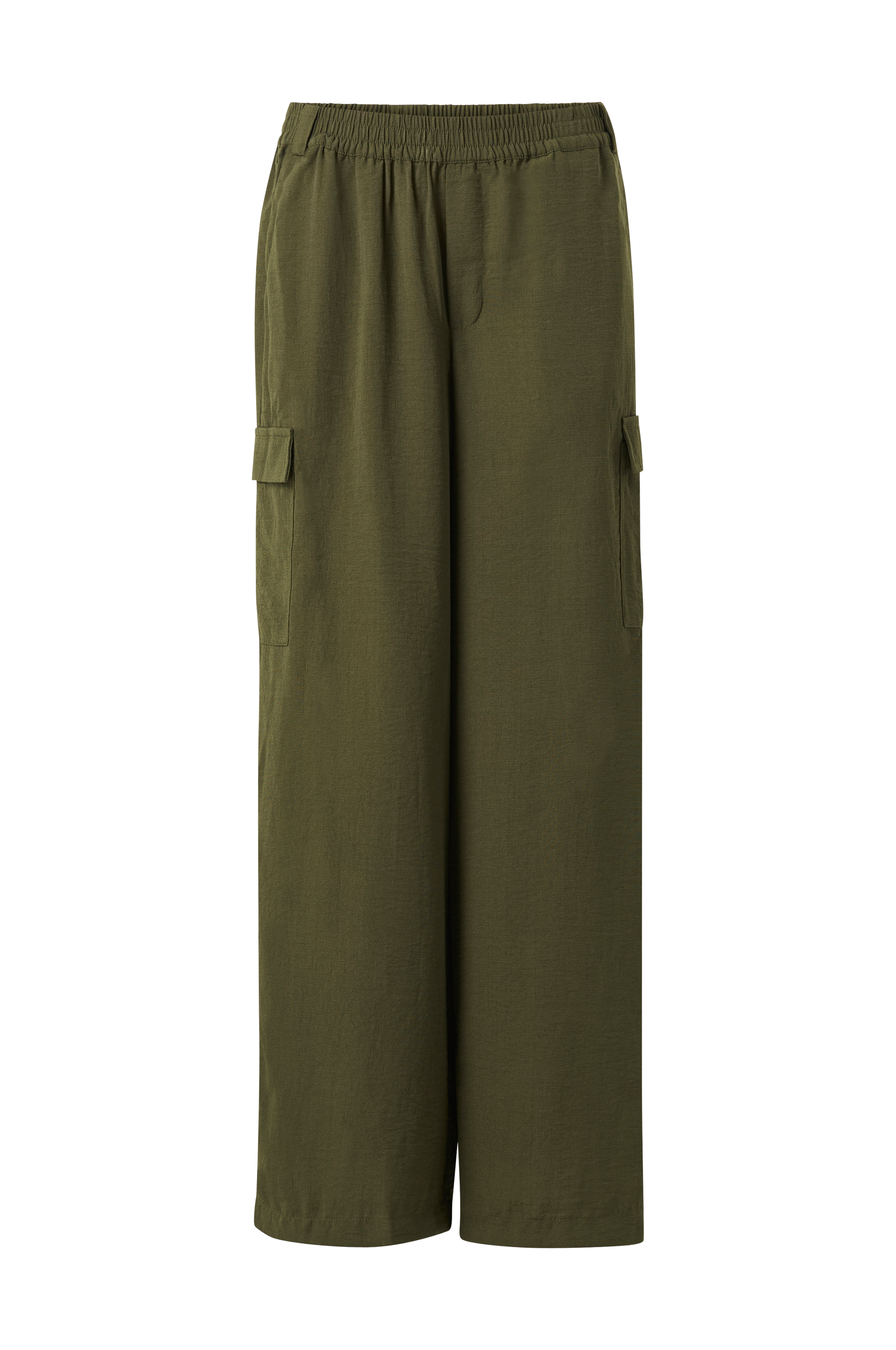 • Brede bukser• Cargo-design med benlommer• Elastisk midje• Sidelommer