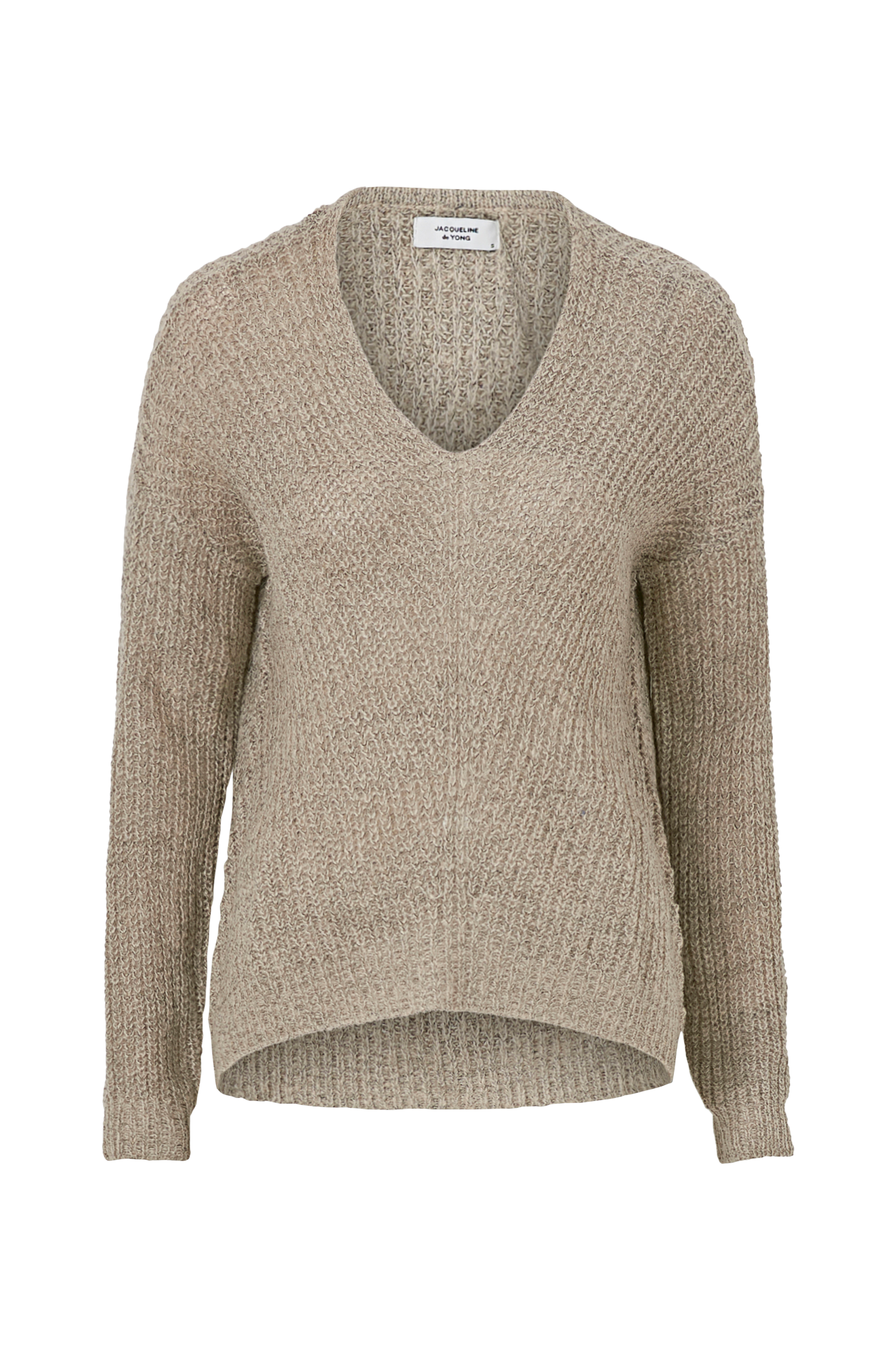 Luftig strikket genser med V-utringning foran og lave skuldersømmer. Ledig passform.