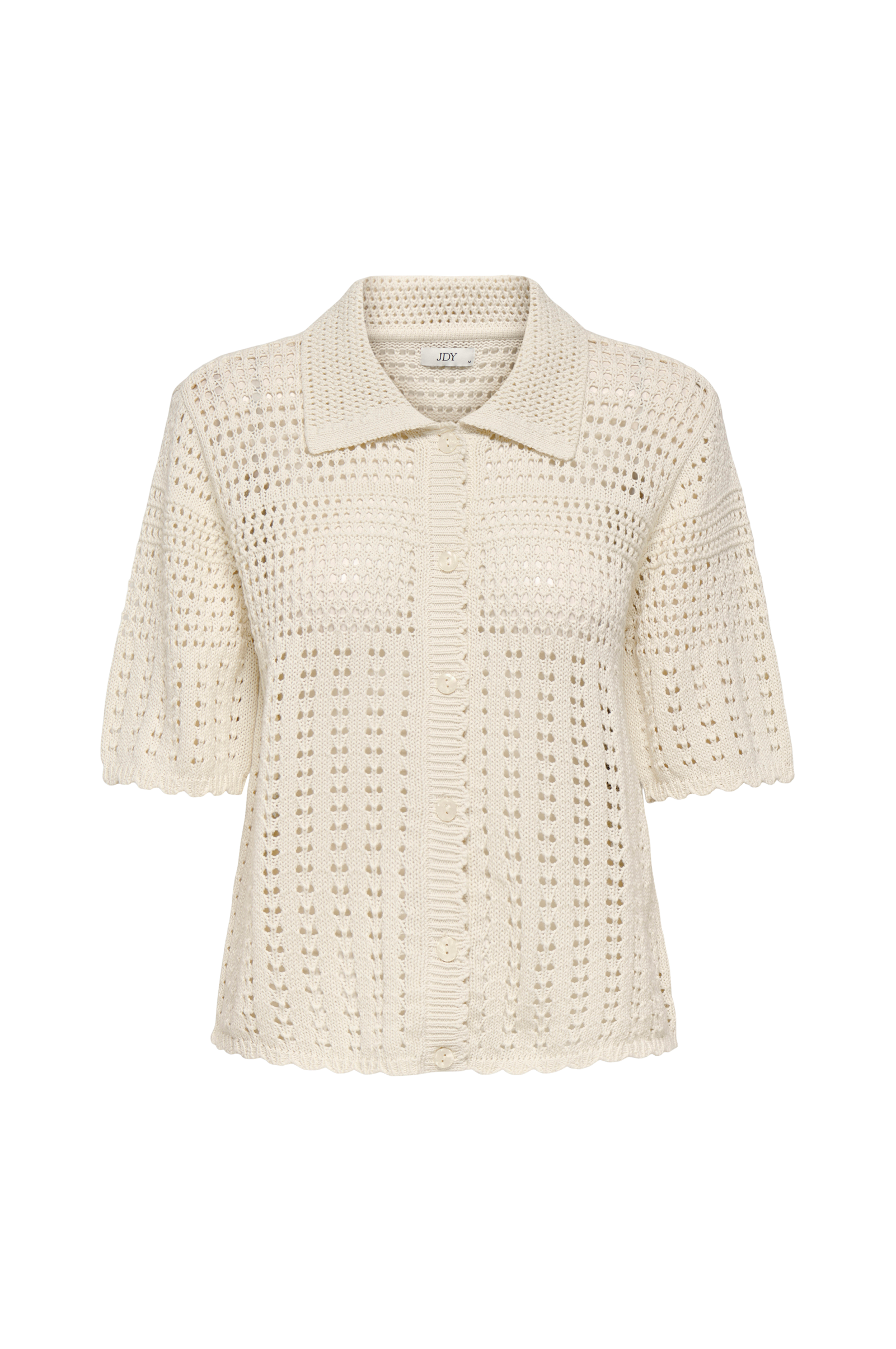 • Hullstrikket kardigan med krage• Korte ermer• Knappelukking
