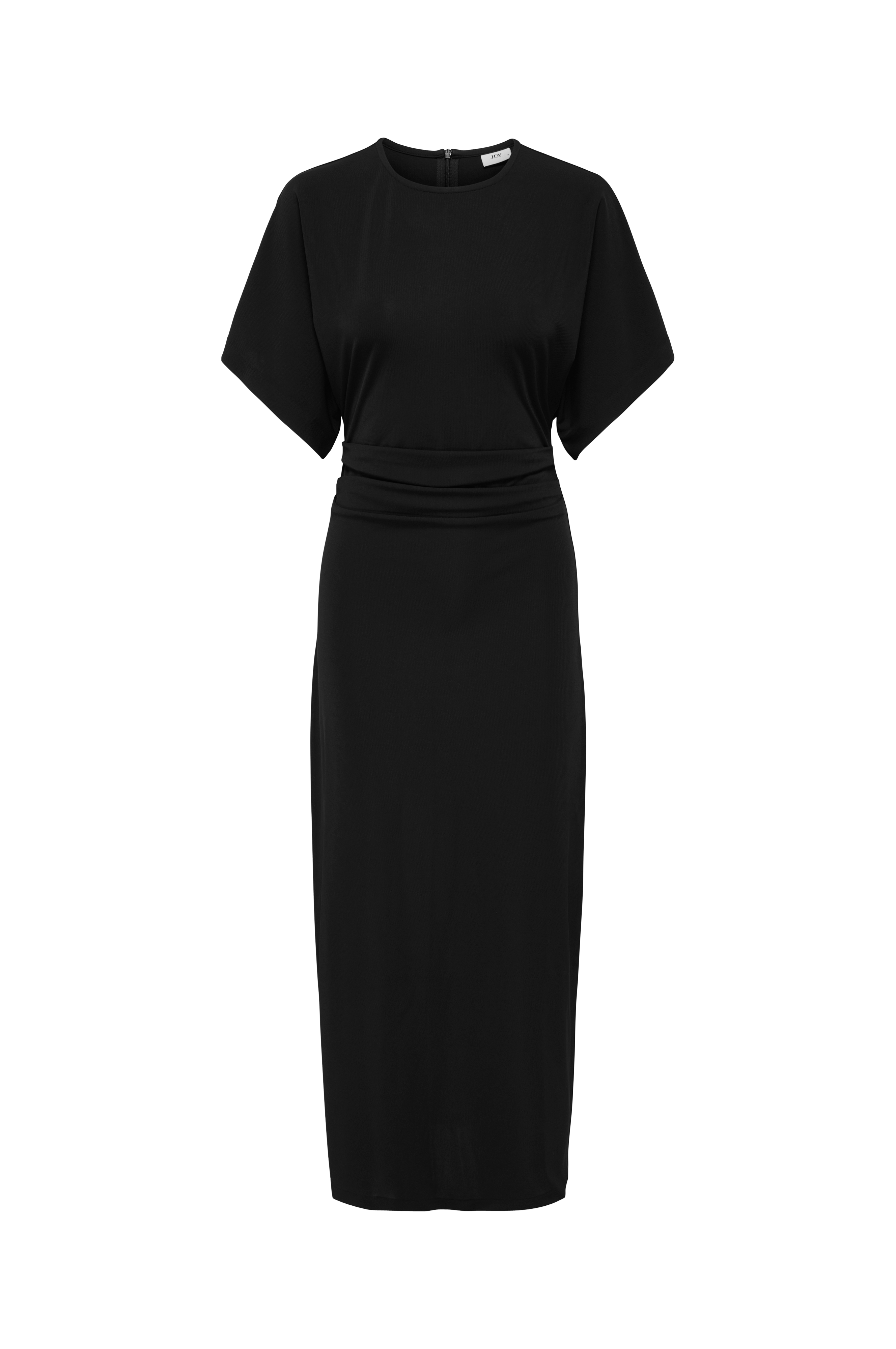 • Lang kjole i mykt, stretchy materiale• Halvlange, brede ermer• Rund hals• Glidelås i ryggen• Drapering ved midjen• Figurnær passform passform• Lengde: 137 cm i størrelse S