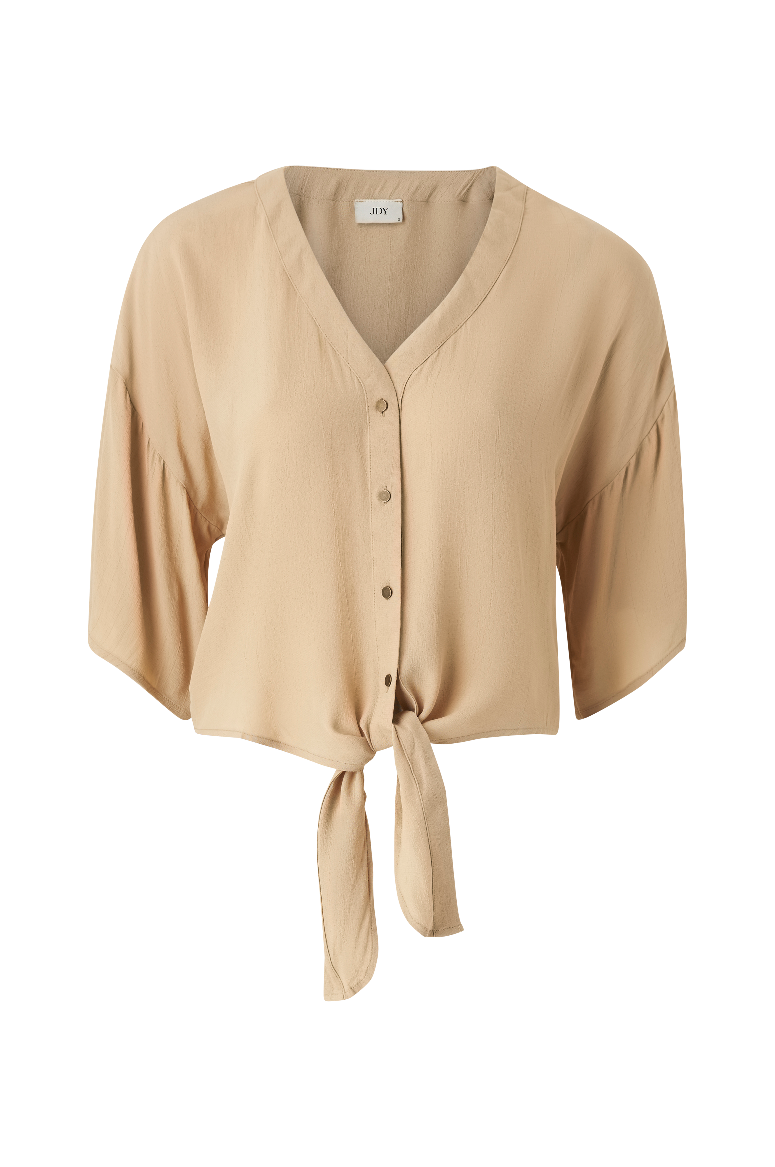 • Avslappet passform• V-hals snitt• Knapper foran• Knyting nedover foran• Halvlange, brede ermer