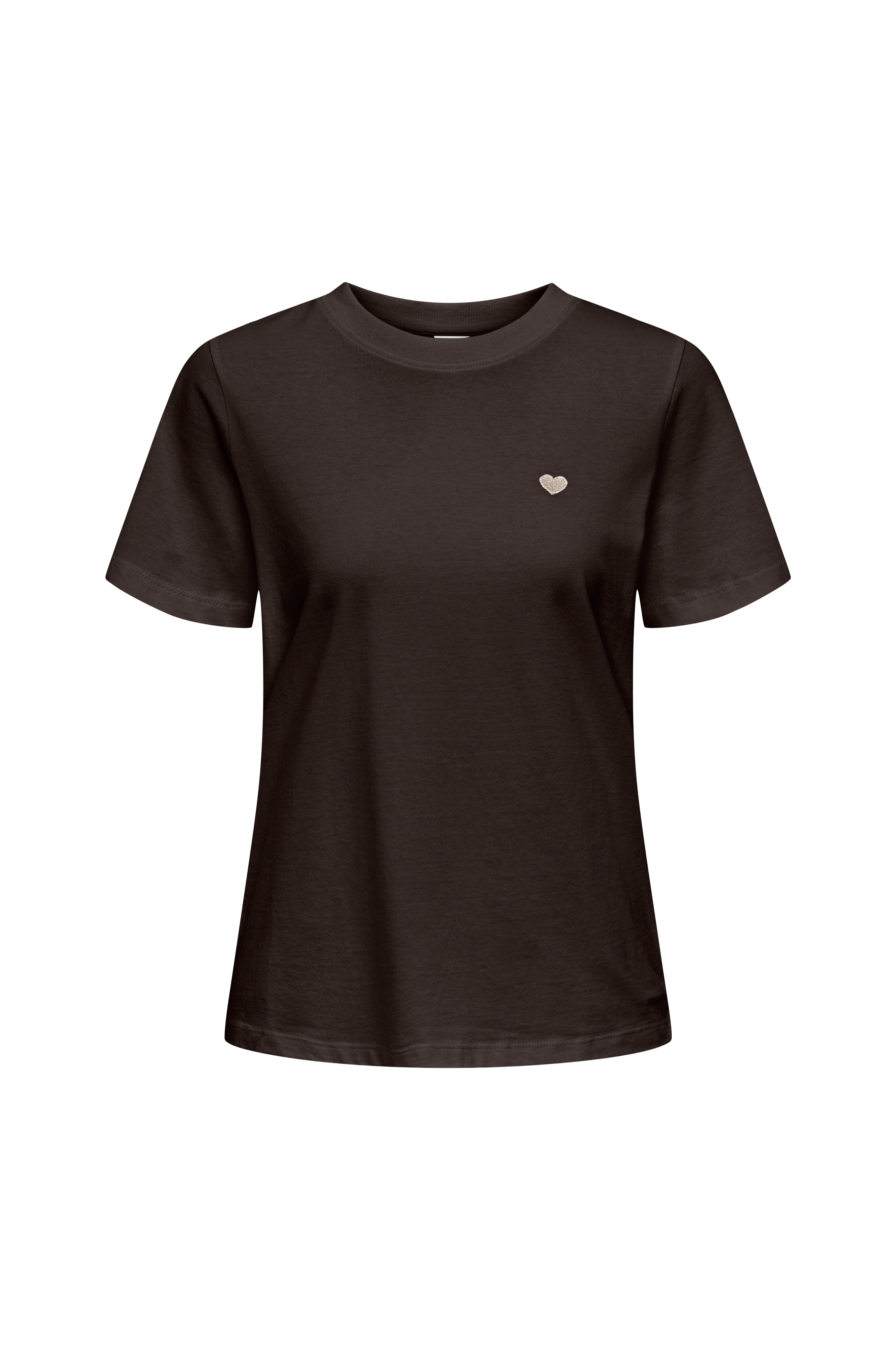 • Lite, brodert hjerte på brystet• Rund, ribbet hals• Korte ermer