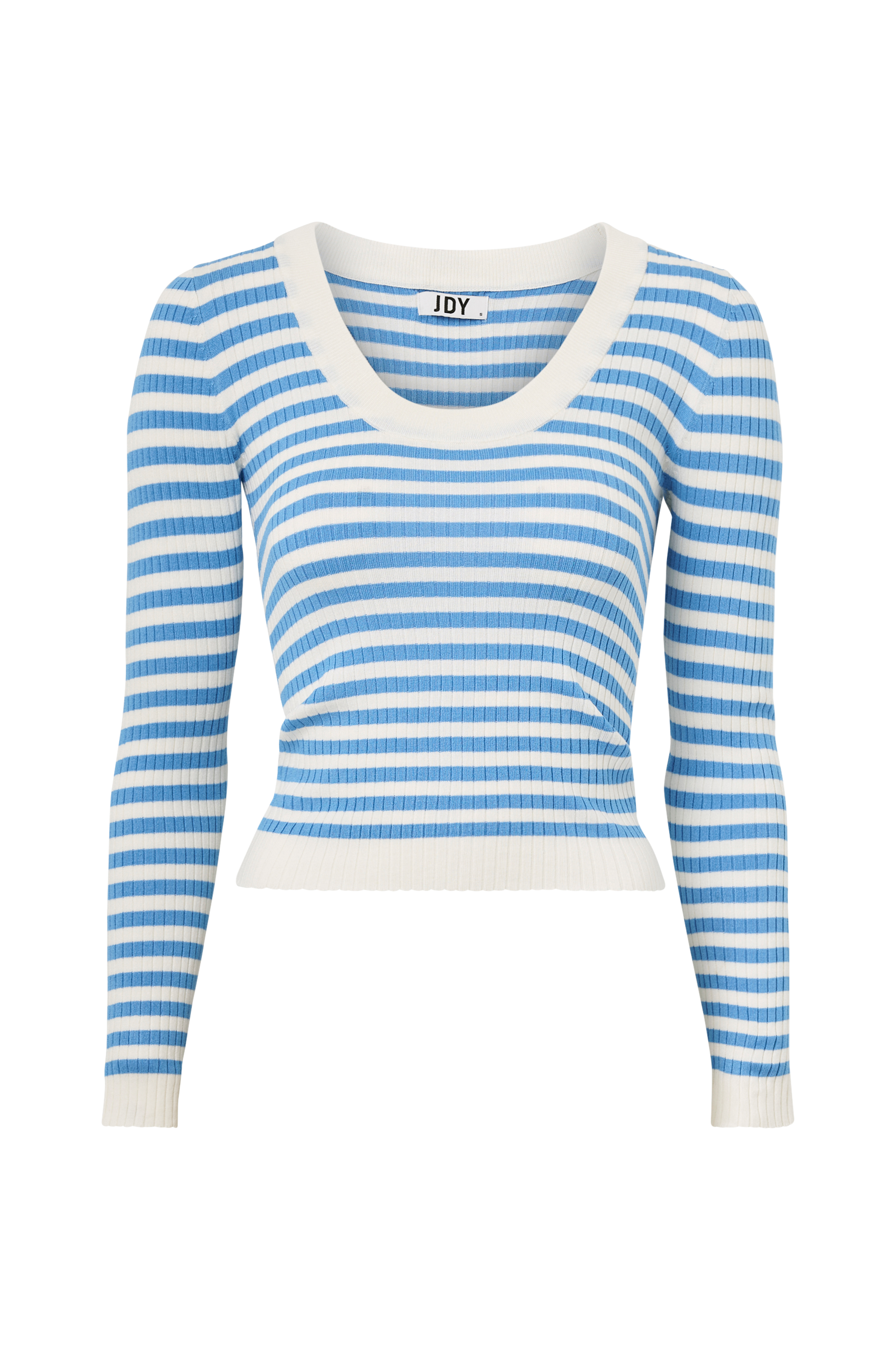 • Ribbestrikket, ettersittende topp i viskosemiks• Dyp, ribbet hals• Lange ermer