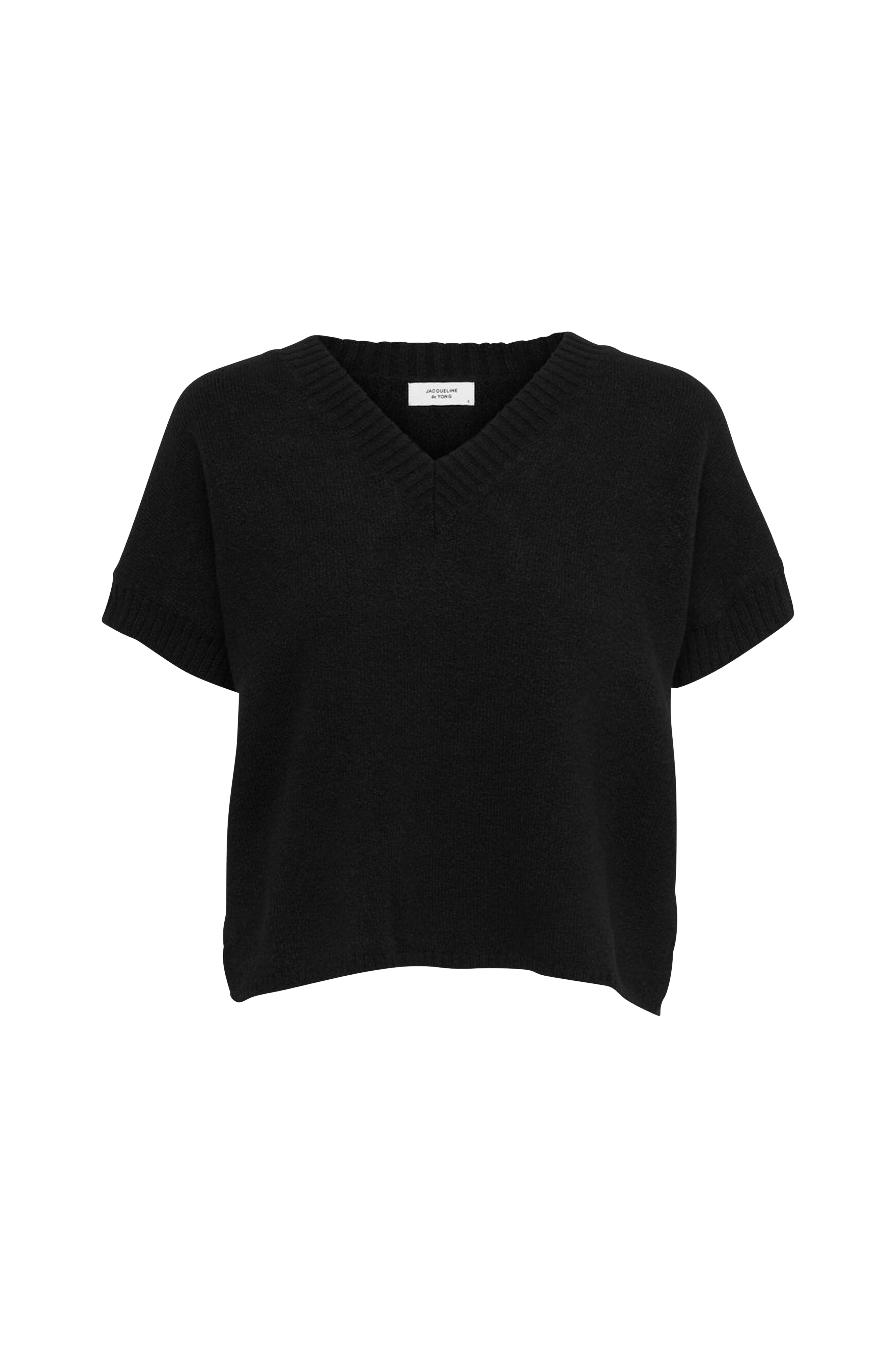Strikket topp med firkantet passform. V-utringet hals og korte ermer. Vrangbord rundt hals, erme- og nederkant.